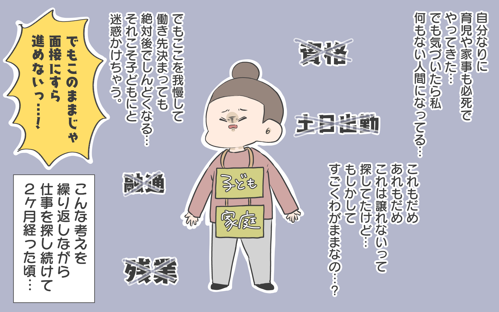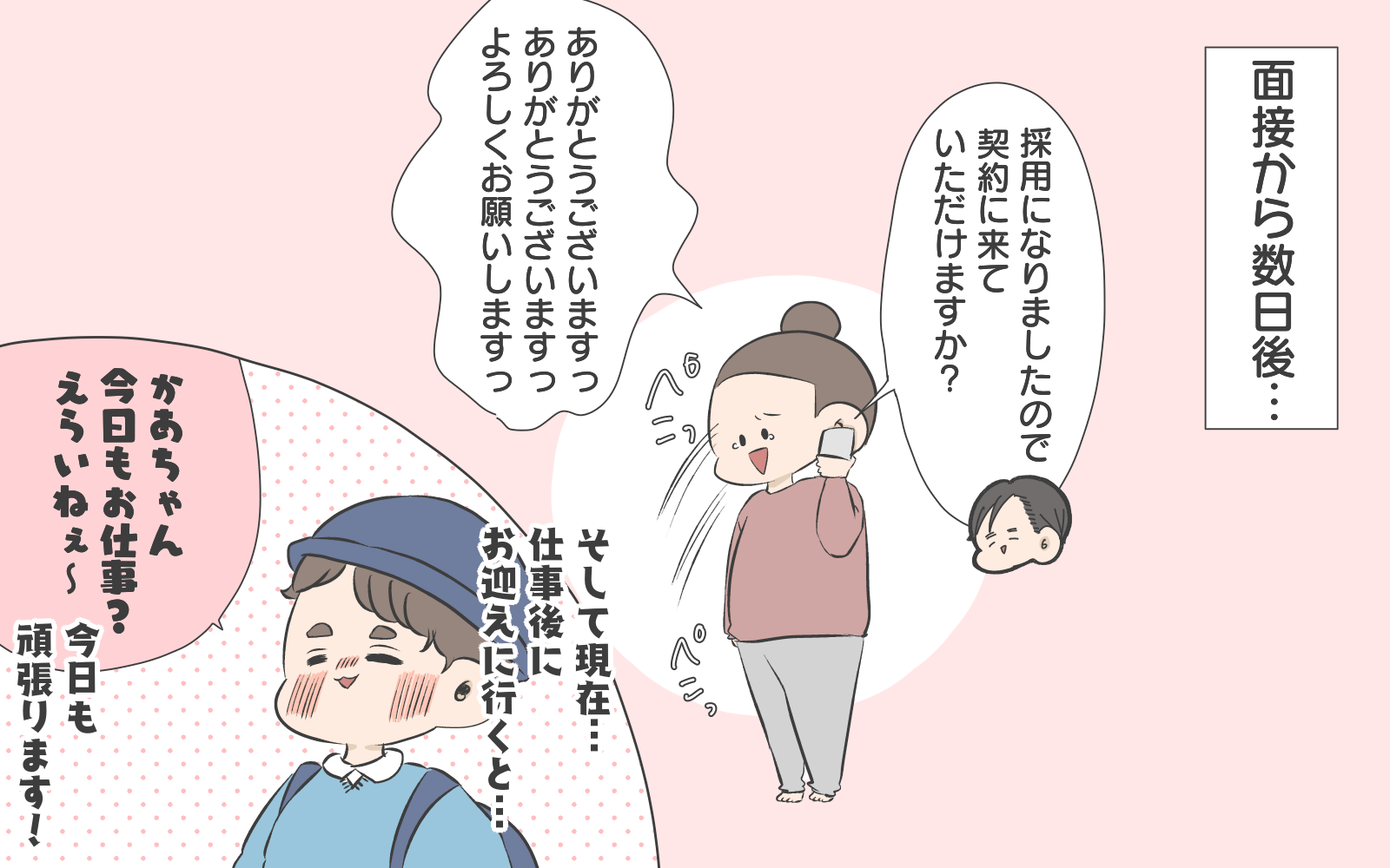 育児マンガ家おかめ(@omame_okame)さんが描く!ワーキングマザーの日常の出来事や奮闘をマンガでお届けします。息子のおまめくんも大きくなり、そろそろ働こうかな…?しかし、現実はそんなに甘くなかったのです。おかめさんは無事、職場を見つけられたのでしょうか…?