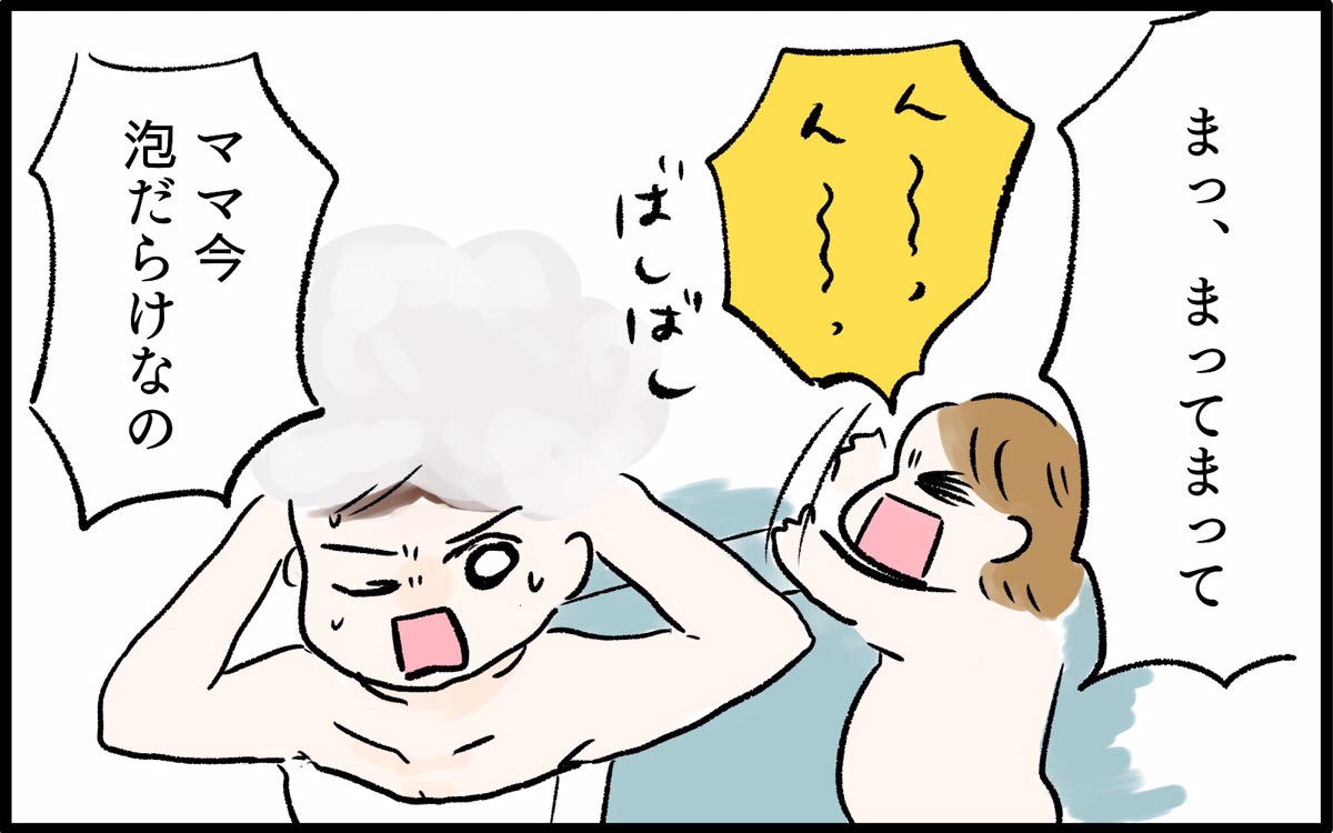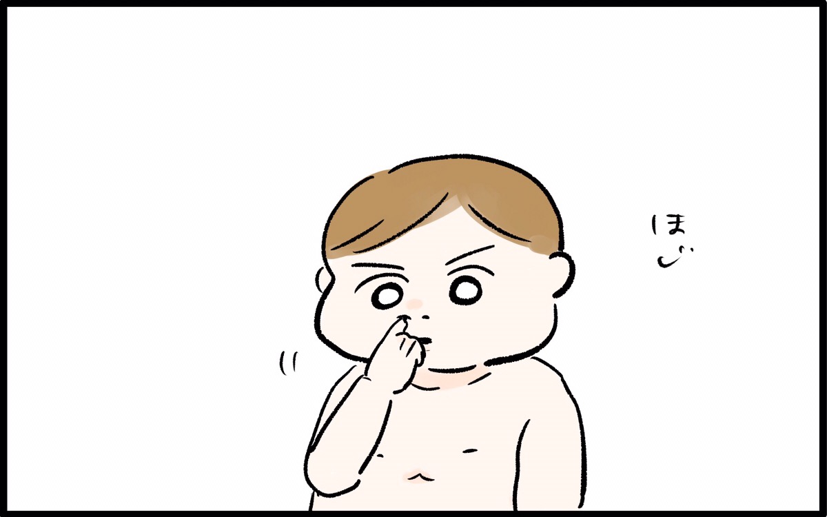 まさか、鼻をほじってママにひっつけるとは予想外です。しかし、これも立派な抗議の仕方。「ん~~」と声をあげるだけでなく態度で示すぐっちゃんが、やけに大人びて見えますね。