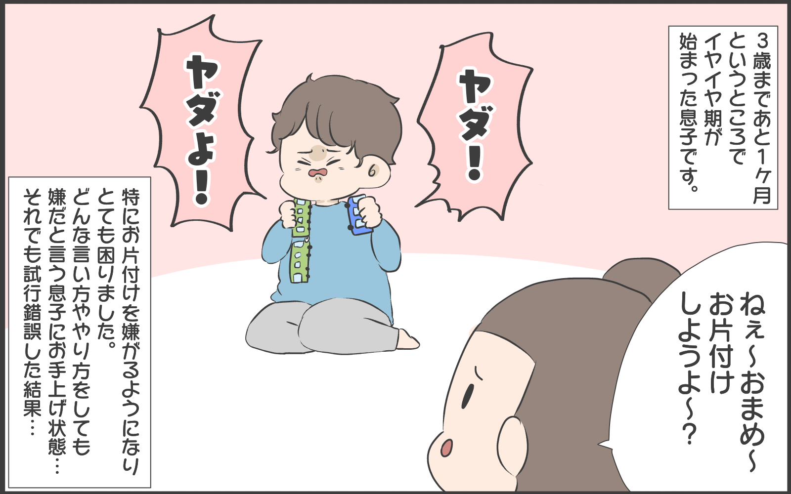 育児マンガ家おかめ(@omame_okame)さんが描く!ワーキングマザーの日常の出来事や奮闘をマンガでお届けします。子どものイヤイヤ期にお困りのママ必見!身近なあのアイテムひとつで乗り越えられる…!?