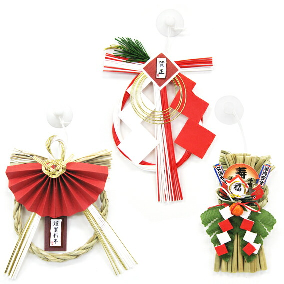 手のひらサイズの玉飾りや輪飾りが3つ入ったセット商品です。吸盤が付いているので、窓や鏡、車のガラス部分にも簡単に取り付けられます。小ぶりでどのような空間にもなじみやすく、さりげなく飾りたい方にもおすすめです。