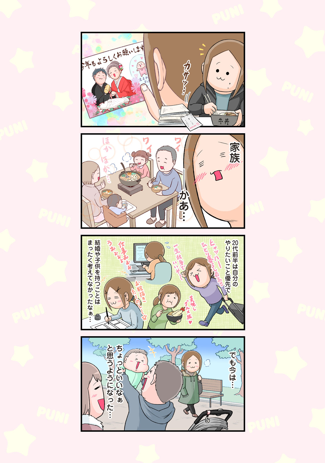 ママの中には結婚する前、子どもが生まれる前にバリバリと仕事していた方もたくさんいます。決して結婚、出産だけが女性の幸せではありません。しかし、どこか頭の片隅で「家族」というものにあこがれる思い、共感する方も多いのではないでしょうか。