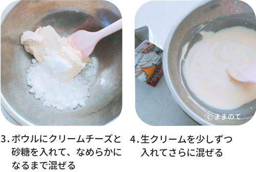 ・クリームチーズは常温に戻しておくとやわらかくなり、混ぜやすいです。