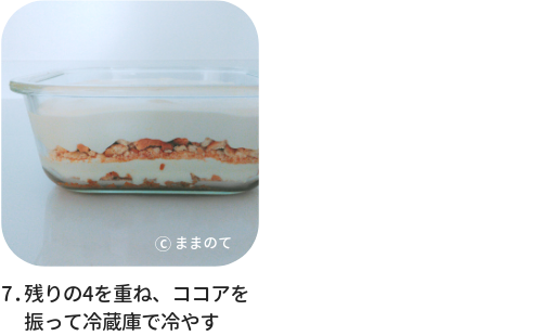 7.残りの4を重ね、ココアを振って冷蔵庫で冷やしたら完成