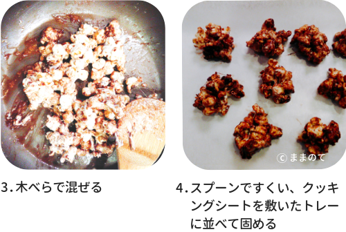 4.スプーンですくい、クッキングシートを敷いたトレーに並べて固める