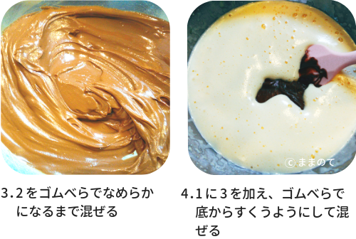 4.1に3を加え、ゴムべらで底からすくうようにして混ぜる