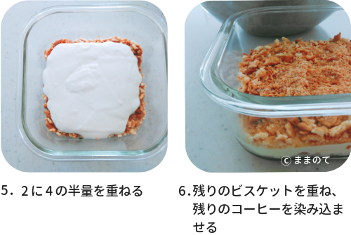 6.残りのビスケットを重ね、残りのコーヒーを染み込ませる