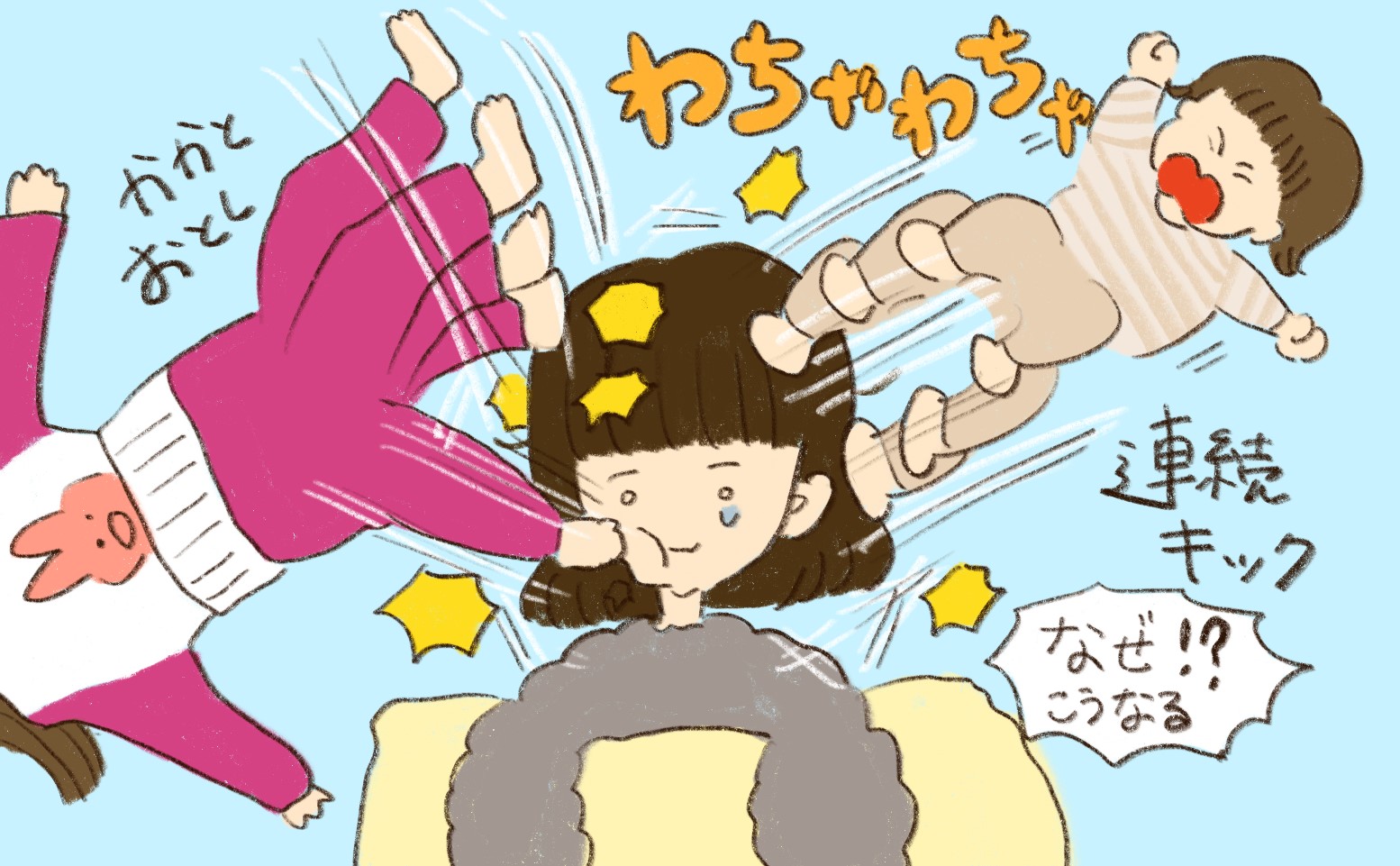 2歳と1歳の年子姉妹を育てているアラサーママです。お腹には8ヶ月の赤ちゃんがいます。お腹が大きくなり、元気いっぱいの娘たちを追いかけ回すのが大変になってきました。そんな私をパパがいつも手助けをしてくれますが、私と同じように元気な姉妹の面倒を見るのは大変なようです。