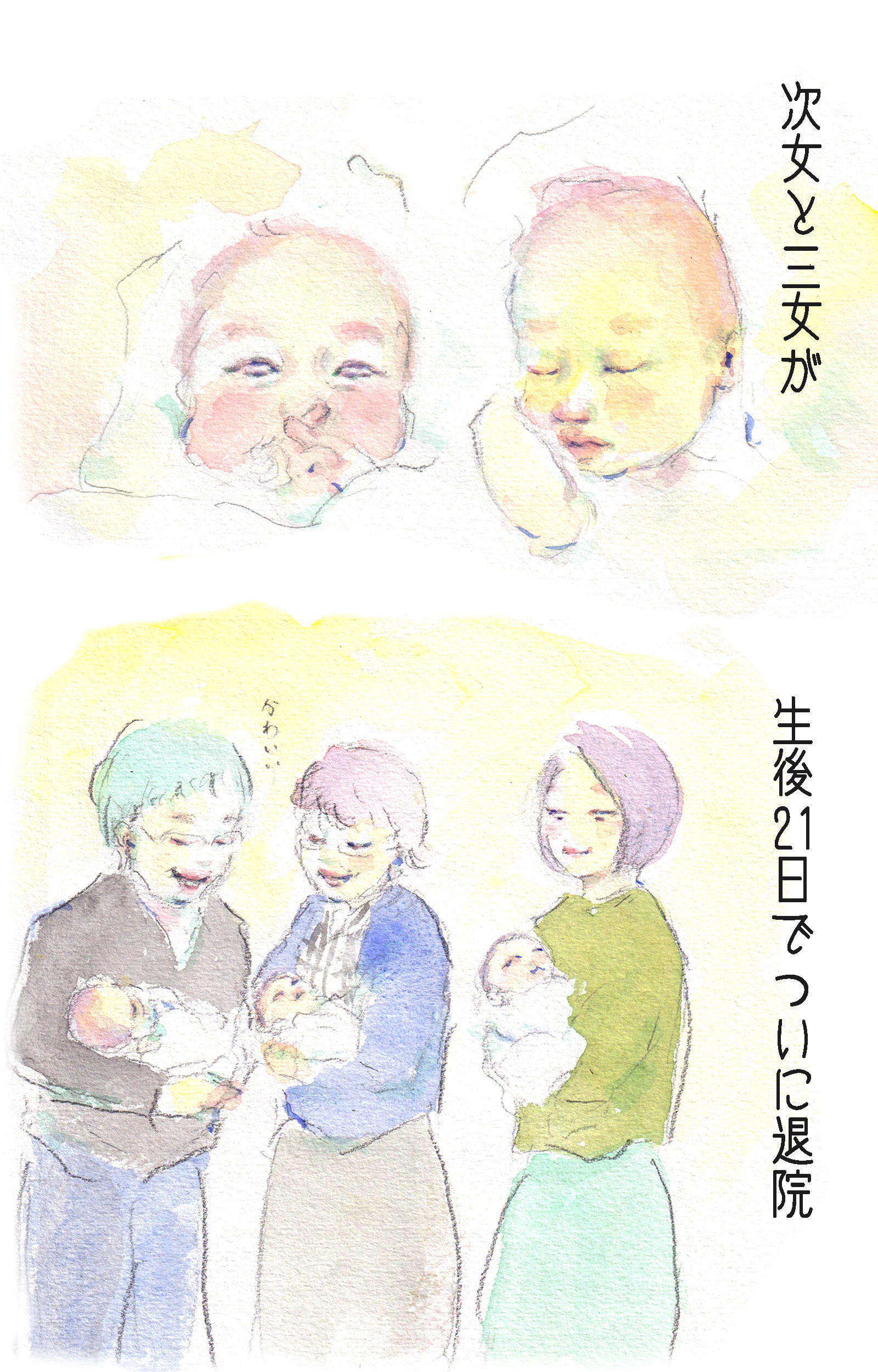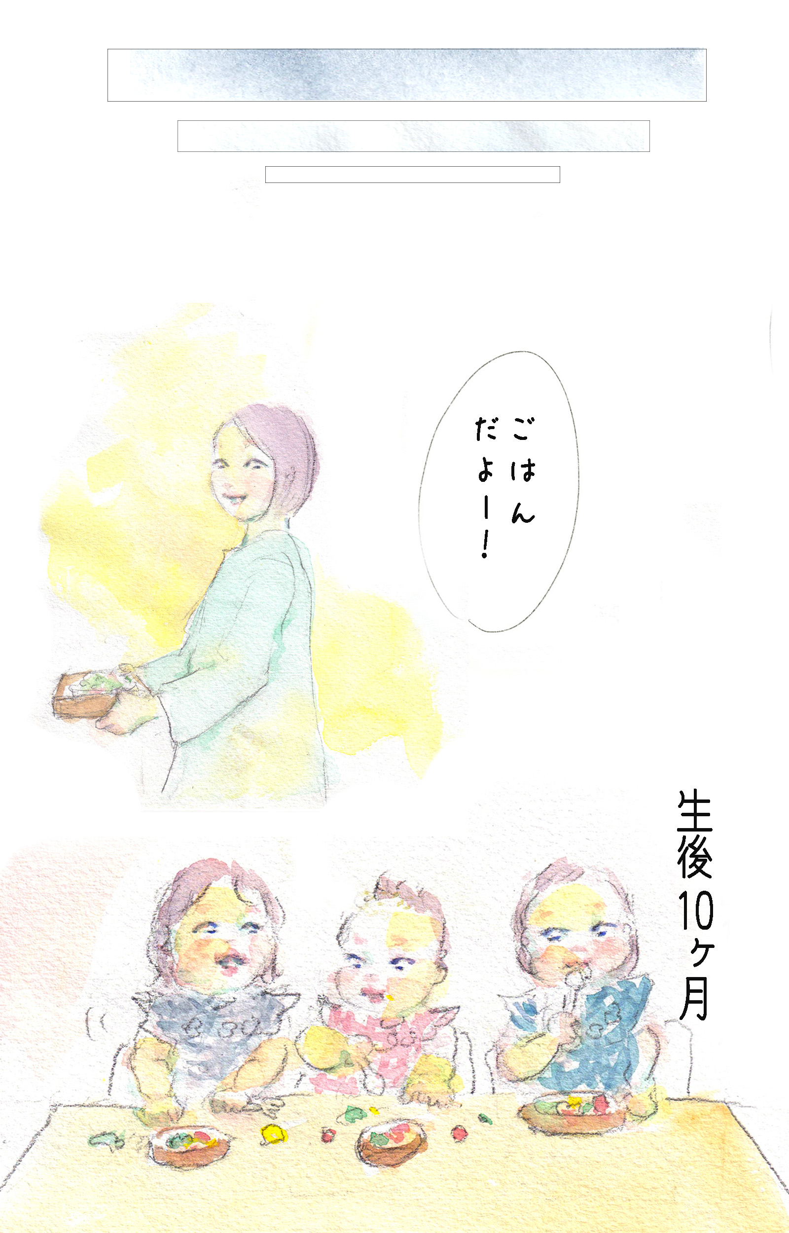 yukkoさんの作品を通して、多胎児の育児は経験した方でないとわからないことも多いなと痛感させられています。赤ちゃんたちがミルクをうまく飲めないと「命を守るれないかもしれない」という、ママの不安な気持ちがとても印象的でしたね。しかし、今では3人とも平均以上に大きくなった…というシーンにジーンと心の中が温かくなりました。