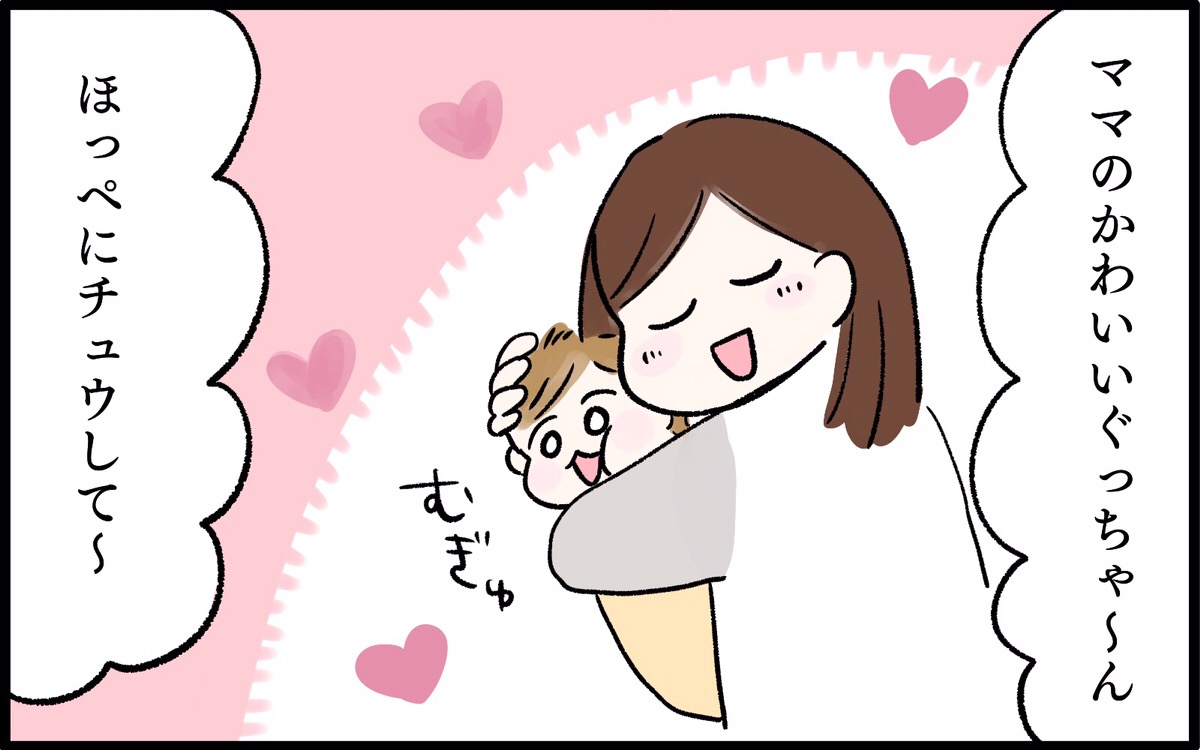 InstagramやTwitterで大人気・chiikoさんの「ままのて」育児マンガをお届けします。我が子がかわいくて、おもわずほっぺを合わせたり抱きしめたりすることありますよね。子どもは喜んでくれることもあればキョトンとしていることもあり、反応が楽しみです。しかし、幼い子どもの行動はときに大人の理解を超えることも…!
