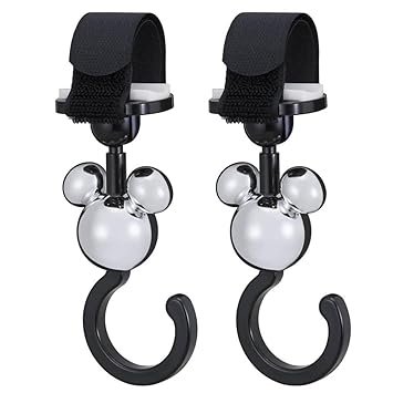 ミッキーのシルエットデザインのベビーカーフックです。車や自転車、ベッドまわりなどでも使用することができるのでとても便利ですよ。滑り止め付きで、常にフックが下のほうに行くよう工夫されています。