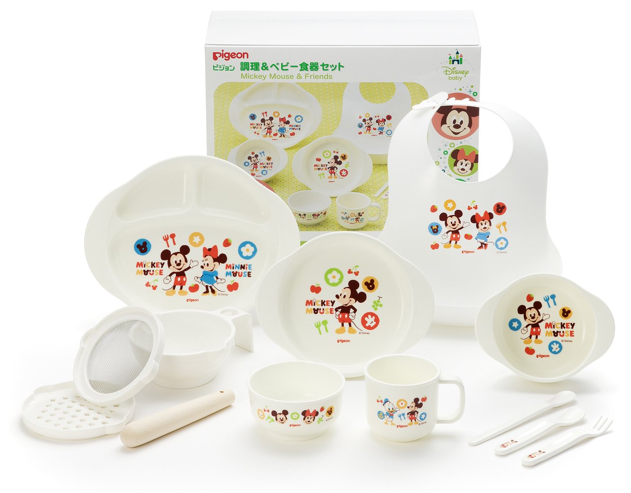 離乳食の時期にとても便利な調理&ベビー食器のセットです。離乳食に必要な食器と調理器具がこのセットだけで全部そろいます。電子レンジも使用可能で、食器などは重ねてコンパクトに収納できますよ。