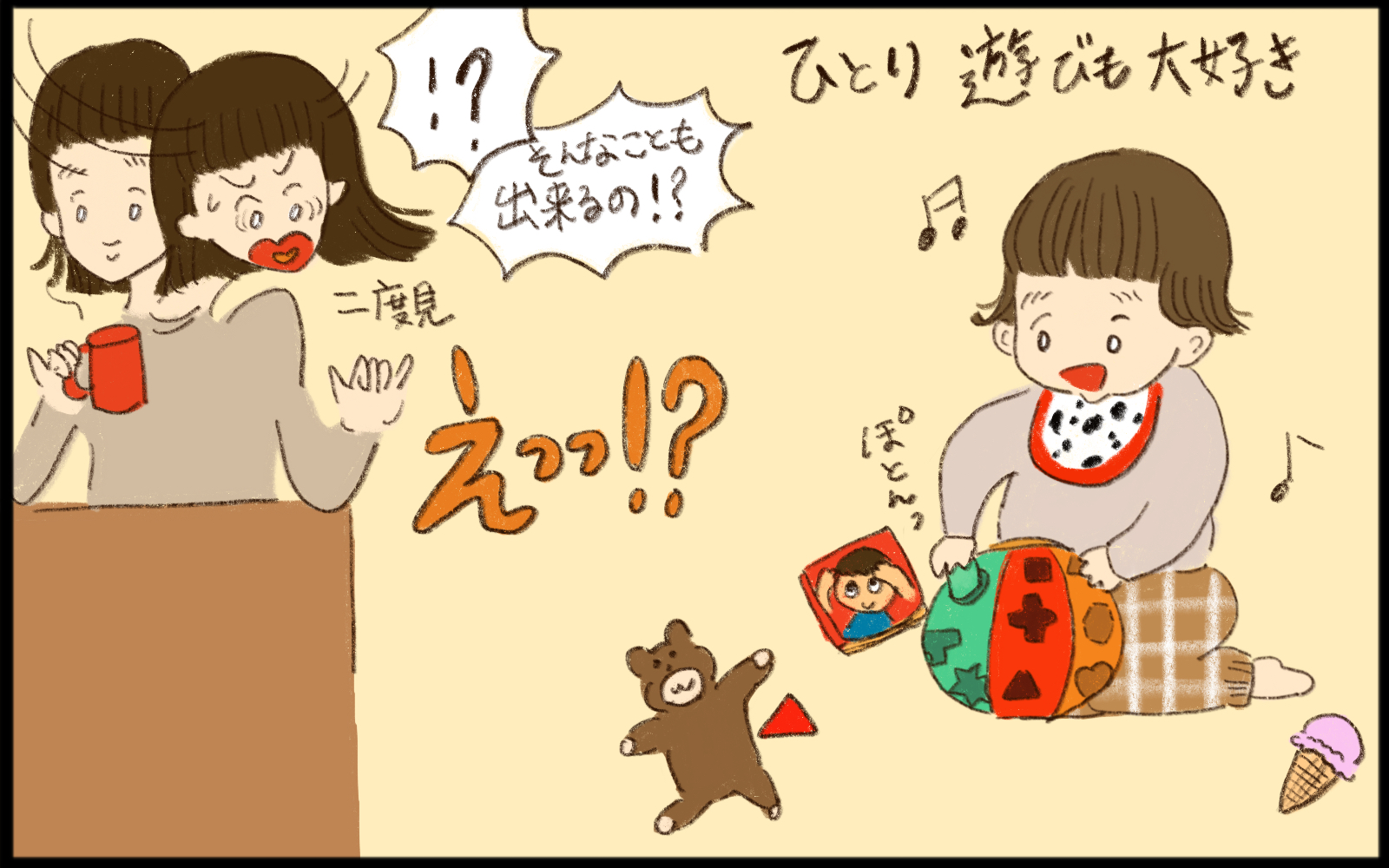 そしてひとり遊びも得意なれーちゃん。私やパパと一緒に遊ぶこともありますが、ひとりでいても楽しそうに遊んでいます。