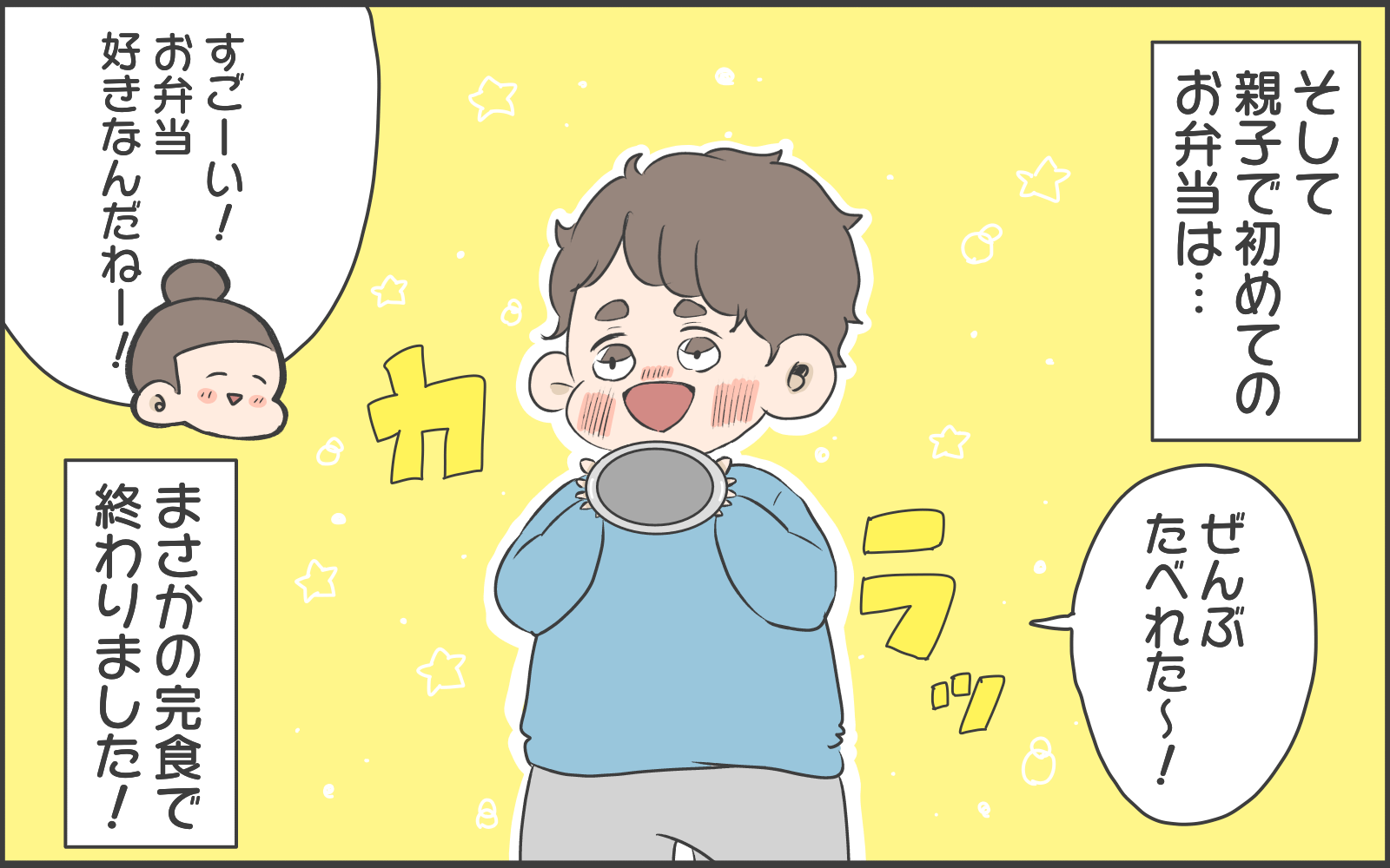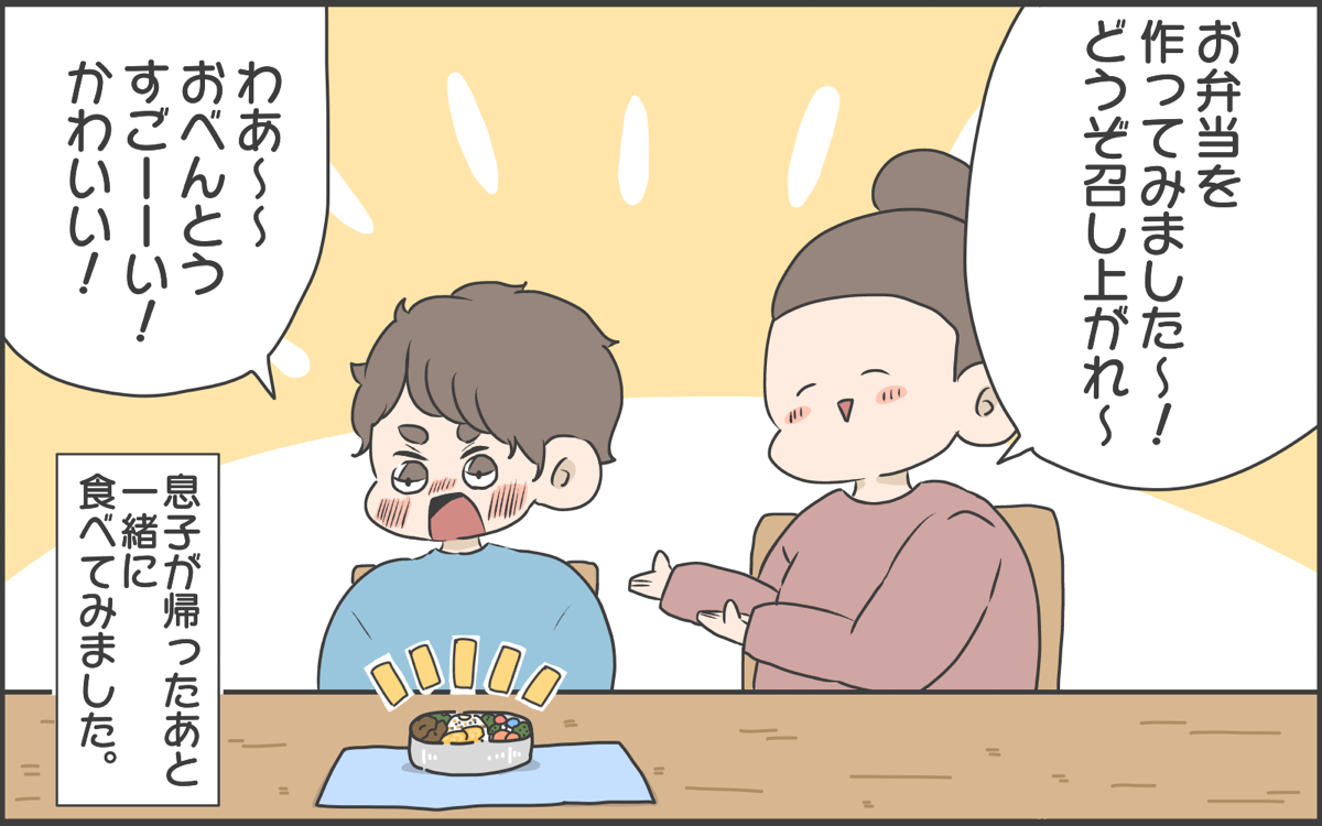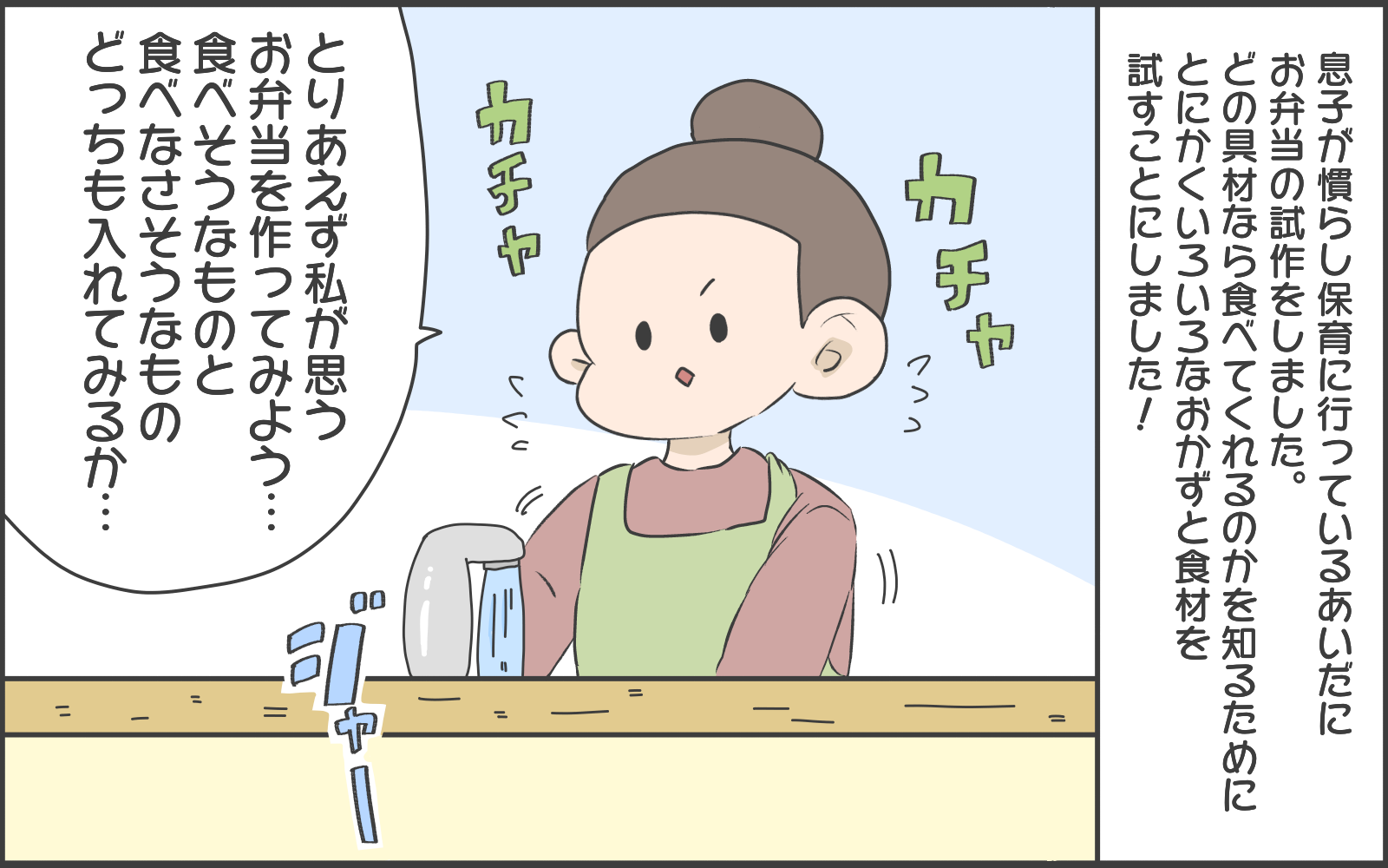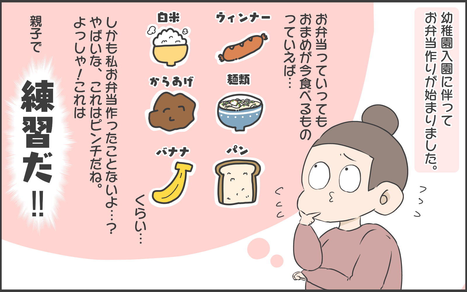 育児マンガ家おかめ(@omame_okame)さんが描く!ワーキングマザーの日常の出来事や奮闘をマンガでお届けします。おまめくんの幼稚園入園に伴って初めてのお弁当作り!試行錯誤して作ったお弁当、おまめくんは食べきってくれるのか…!