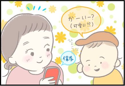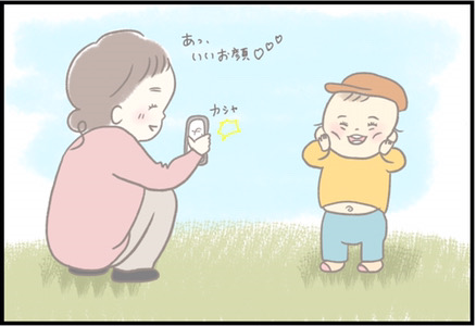 InstagramやTwitterで大人気・ほんわかした日常を描く、つぶみさんの「ままのて」育児マンガをお届けします。子どもとお散歩したり遊んだりすると、写メを撮る方も多いでしょう。かわいらしい満面の笑み、たくさん残したいですよね。そして、子どもが成長するとともに「見せて」という機会が増えます。その子どもの反応は…?