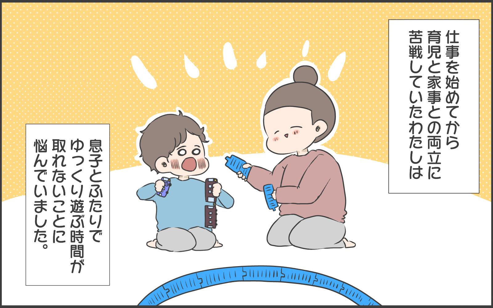 仕事を始めるとなかなか親子で遊ぶ時間が取れなくなってしまいますよね。しかし、一日を振り返ってみると意外と親子で過ごせる時間があることに気づかされました。