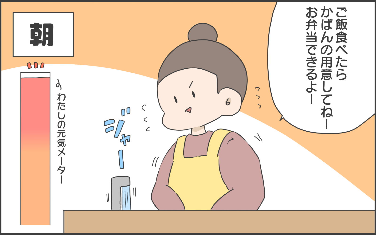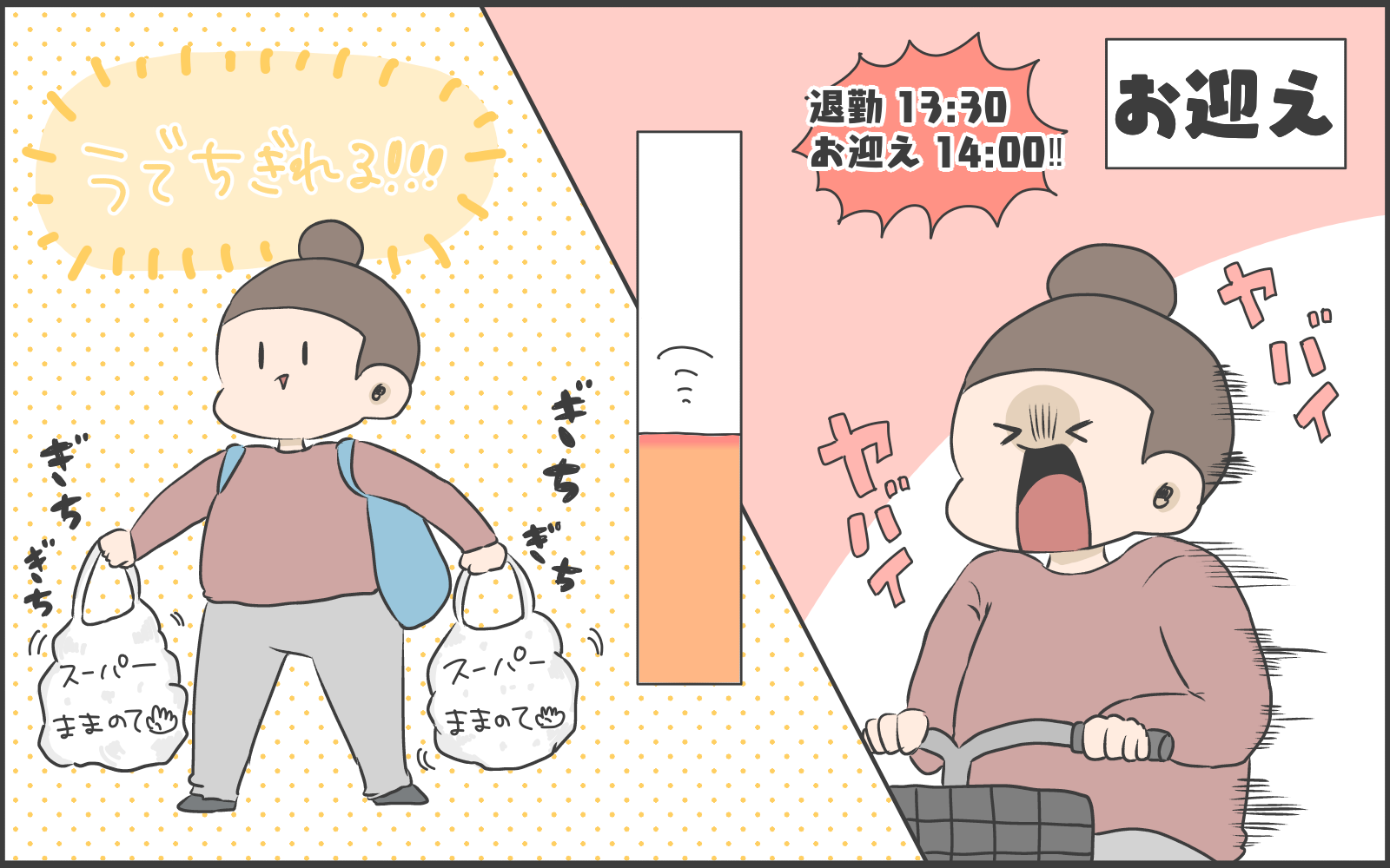 育児マンガ家おかめ(@omame_okame)さんが描く!ワーキングマザーの日常の出来事や奮闘をマンガでお届けします。今回はワーママおかめさんの一日に密着します!息子の送り迎えにお仕事に家事に…、おかめさんの元気メーターに注目ですよ。