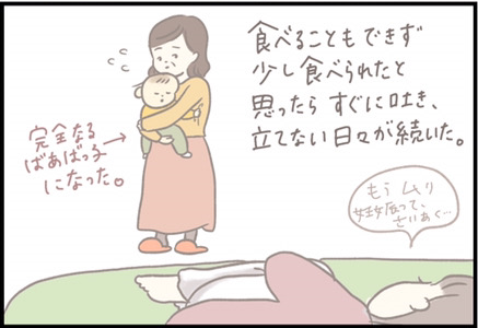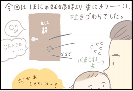 InstagramやTwitterで大人気・ほんわかした日常を描く、つぶみさんの「ままのて」育児マンガをお届けします。現在、二人目を妊娠中のつぶみさん。今回は、二人目の妊娠エピソードの「つわり」をつづってくれました。妊娠中のつわりには個人差がありますが、つぶみさんは一体どうだったのでしょうか。