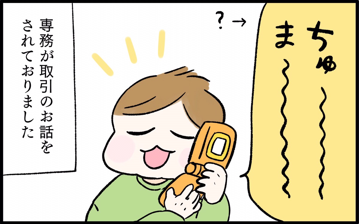 InstagramやTwitterで大人気・chiikoさんの「ままのて」育児マンガをお届けします。子どもとごっこ遊びをするとき、大人も思わず力が入ることもありますよね。すると、子どもも同じく夢中になります。今回のchiikoさんは、おもちゃの電話を使った遊びを描いてくれました。息子・ぐっちゃんとのやり取りに注目です。