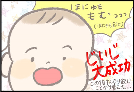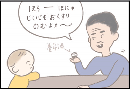 今回のつぶみさんの漫画は、まさにじいじが大活躍です。家族に不評だった「じゅじゅっっ」と音を鳴らして飲む飲み方が、薬嫌いの息子・ほにゅくんの心をつかんだのです。つぶみさんも、まさかじいじが成功するとは思っていなかったかのではないでしょうか。