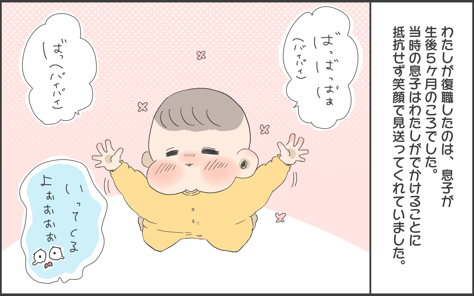 育児マンガ家おかめ(@omame_okame)さんが描く!ワーキングマザーの日常の出来事や奮闘をマンガでお届けします。子どもが大きくなると復職したり、新しくお仕事を始めるママやパパは多いのではないでしょうか。子どもがお仕事に行くママやパパを見送るときの反応はさまざまなようで…?