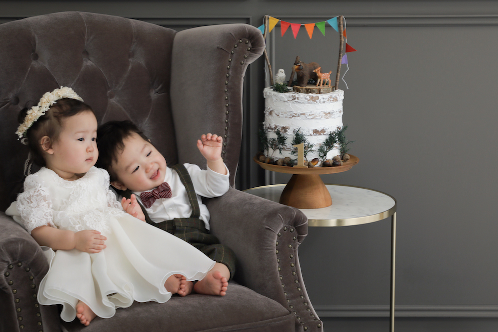 次は、双子ちゃんのお誕生日の記念撮影です。