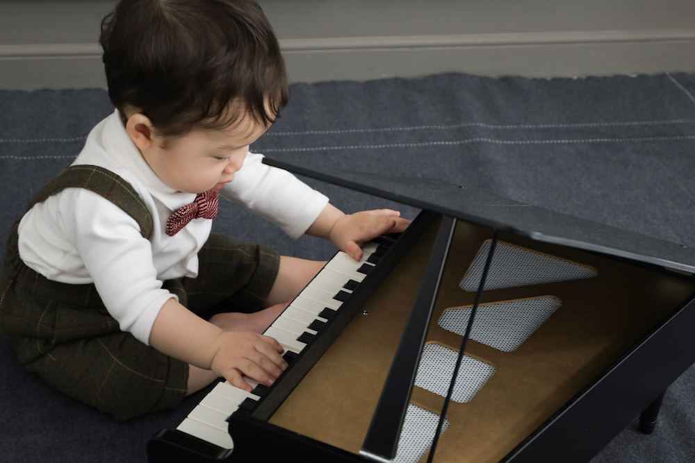アイテムひとつで写真の雰囲気ががらっと変わるので、さまざまなパターンでの撮影が可能です。弟くんはおもちゃのピアノが気に入ったのか、ずっと弾いていて終始ご機嫌な様子でした。