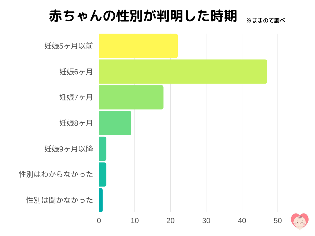 早い時期だと妊娠16週ごろに性別が判明したケースが多いようです。ちょうど安定期に入る時期で、ママに心にも余裕が出てくるころでもありますね。