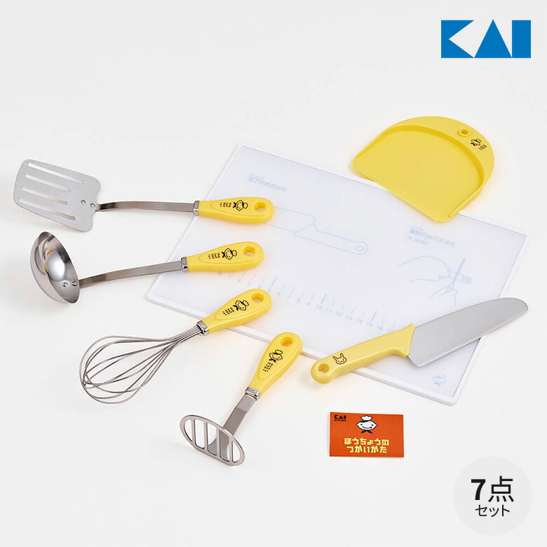 人気ブランド「貝印」の子ども用調理器具セットです。調理器具メーカーである貝印の製品なので、小さいサイズでも機能はしっかりしています。包丁、まな板、泡立て器などの7点セットで、普段の料理にもお菓子作りにも活躍します。かわいくて便利な道具をそろえれば、子どもの料理への関心が一気に高まりますよ。