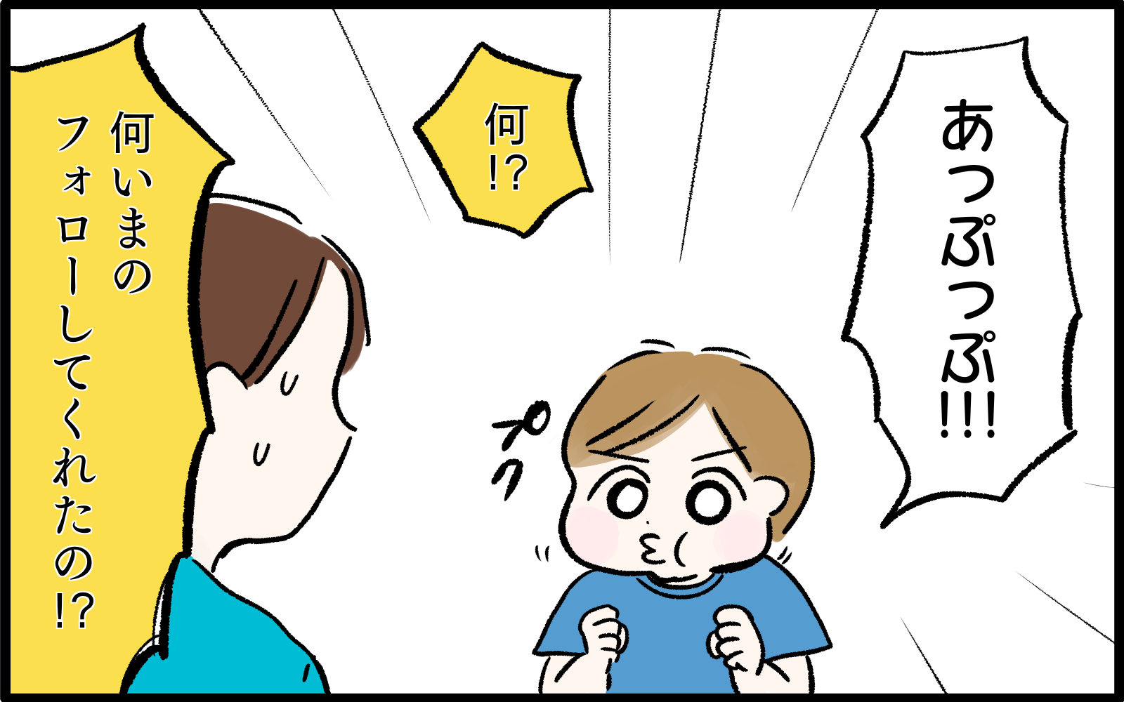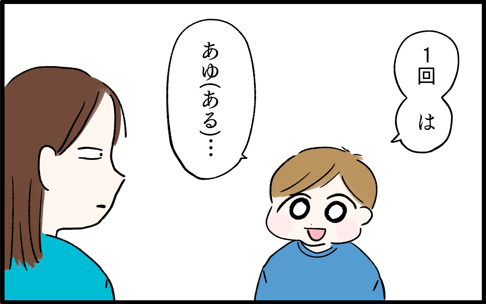 そんな中chiikoさんは、にらめっこブームのぐっちゃんにきちんと向き合っていて素晴らしいですね。「あっぷっぷ!」に笑うと「1回、は、ある…」とぐっちゃん。さて…