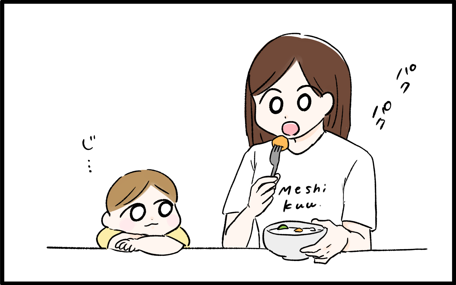 食事中のママに、幼い子どもが「どう?おいし?」なんて大人びた問いかけをされたらママも驚いてしまいますよね。と同時に、子どもの成長に感激です。
