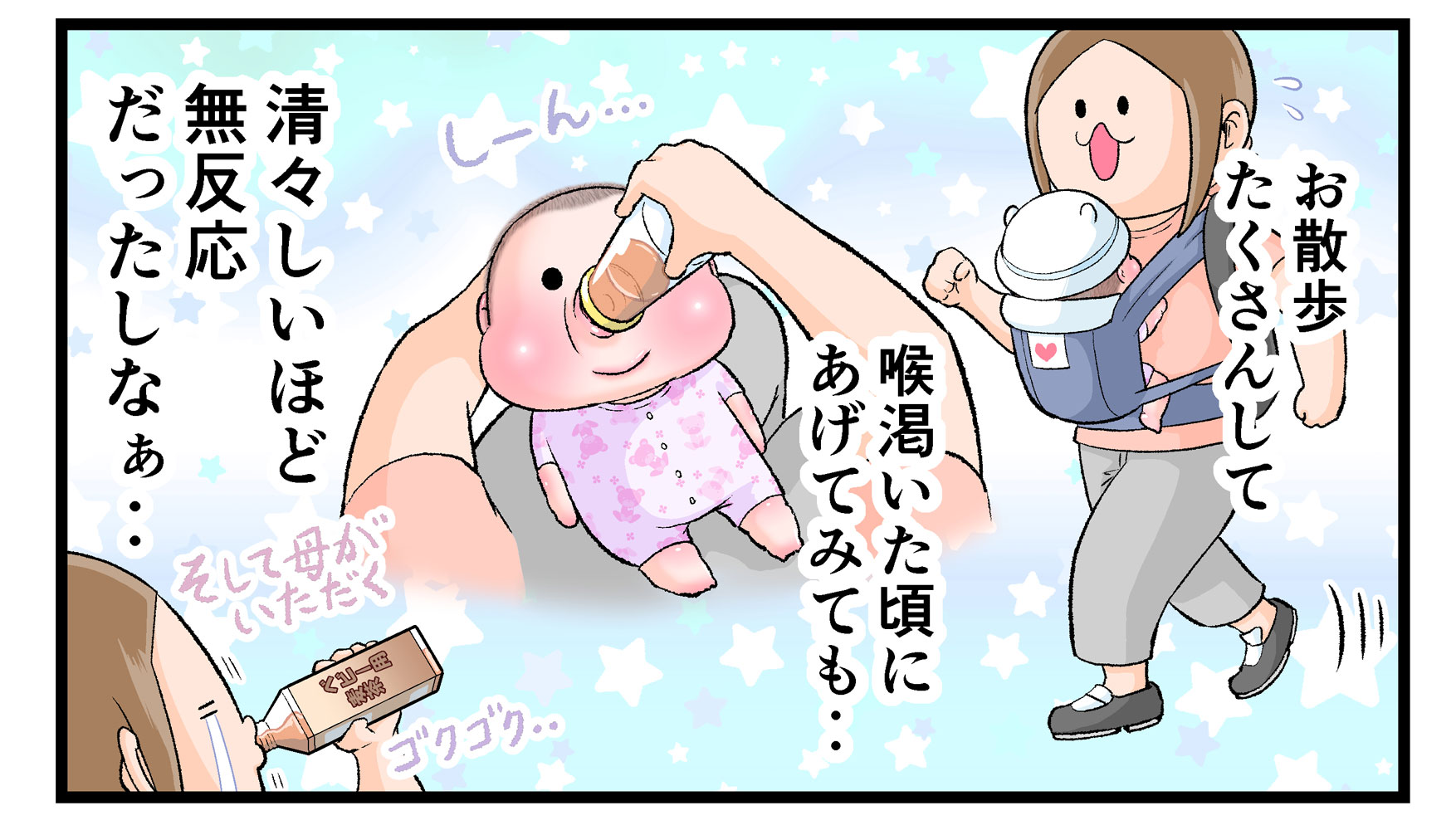 最後のシーン、麦茶は全く反応しなかったのに、ベビー用のジュースをごくごく飲んでいる姿に共感する方も多いのではないでしょうか。赤ちゃんも、ちゃんとおいしいものを知っていて、しっかりと好みがあるのですね!