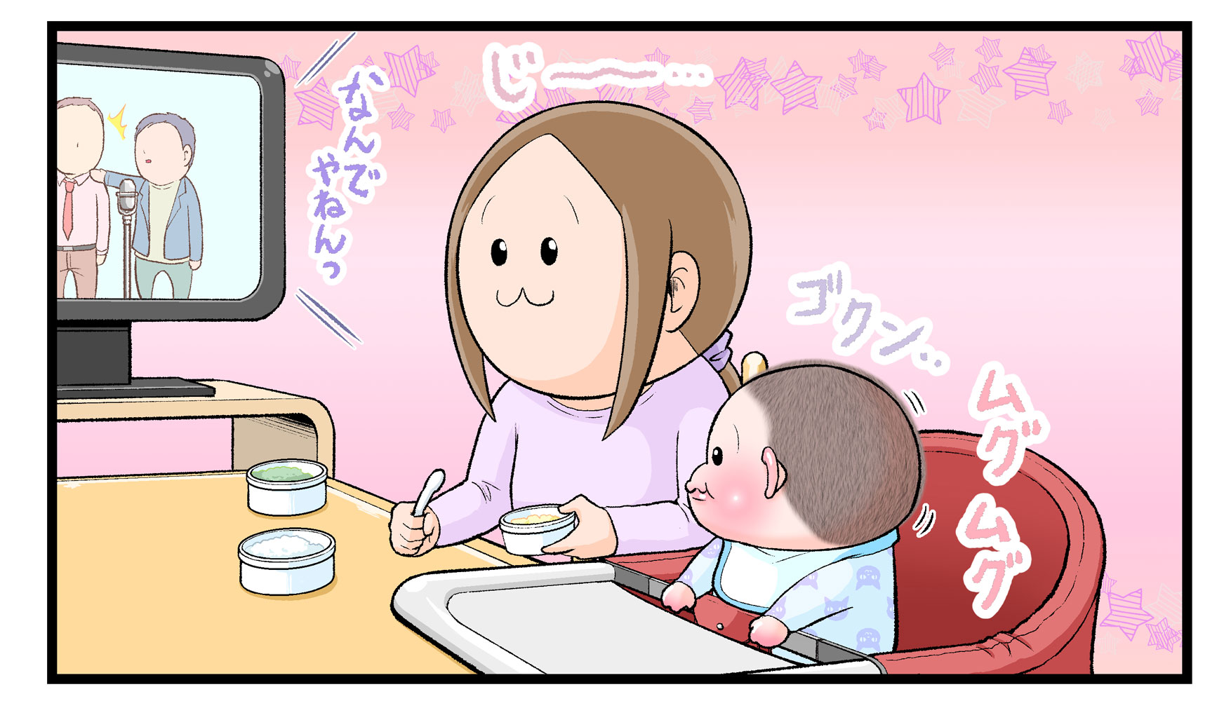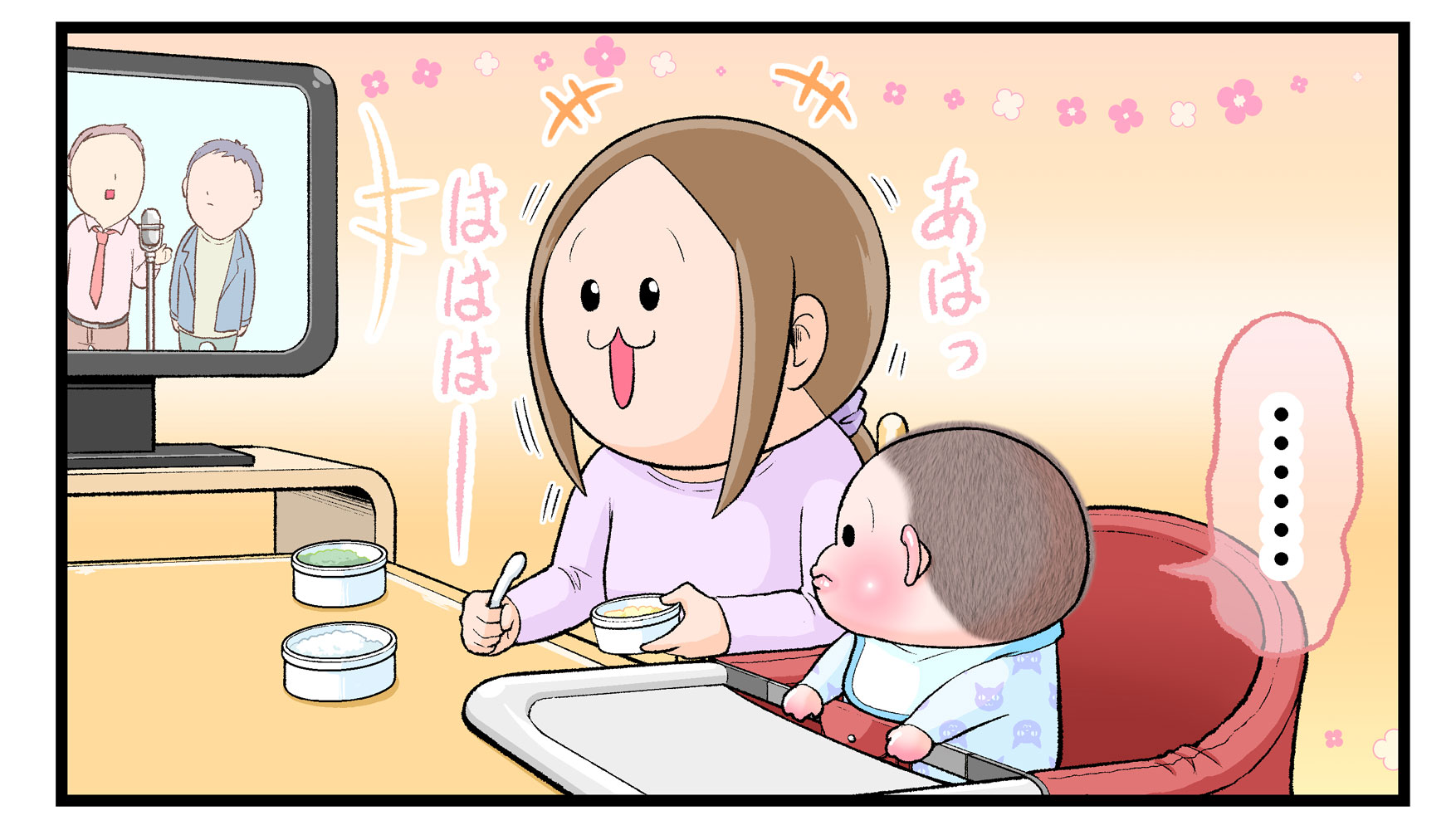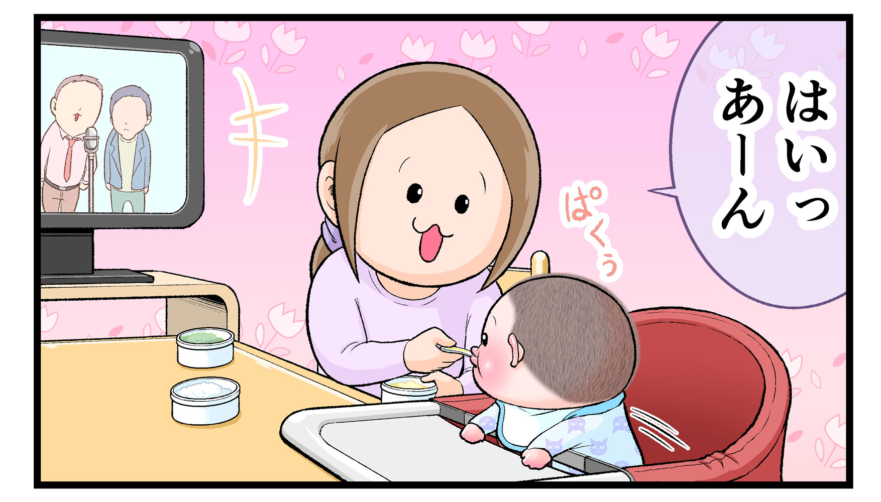 生後8ヶ月頃から、テレビを見て離乳食を口に運ぶ手が止まると急かされるようになりました。