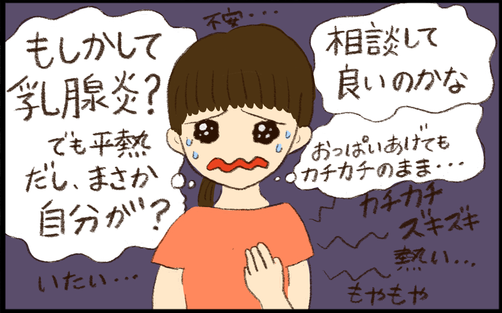 悪寒で身体がガタガタ震え出し、歯はガチガチと鳴ります。しばらくして体温を計ると40.7℃の表示が出ました。生まれて初めて見た体温だったので、とても驚きました。新型コロナウイルスが流行していることもあり、「胸もやわらかいし、乳腺炎じゃなかったらどうしよう…」という不安がどんどん大きくなりました。