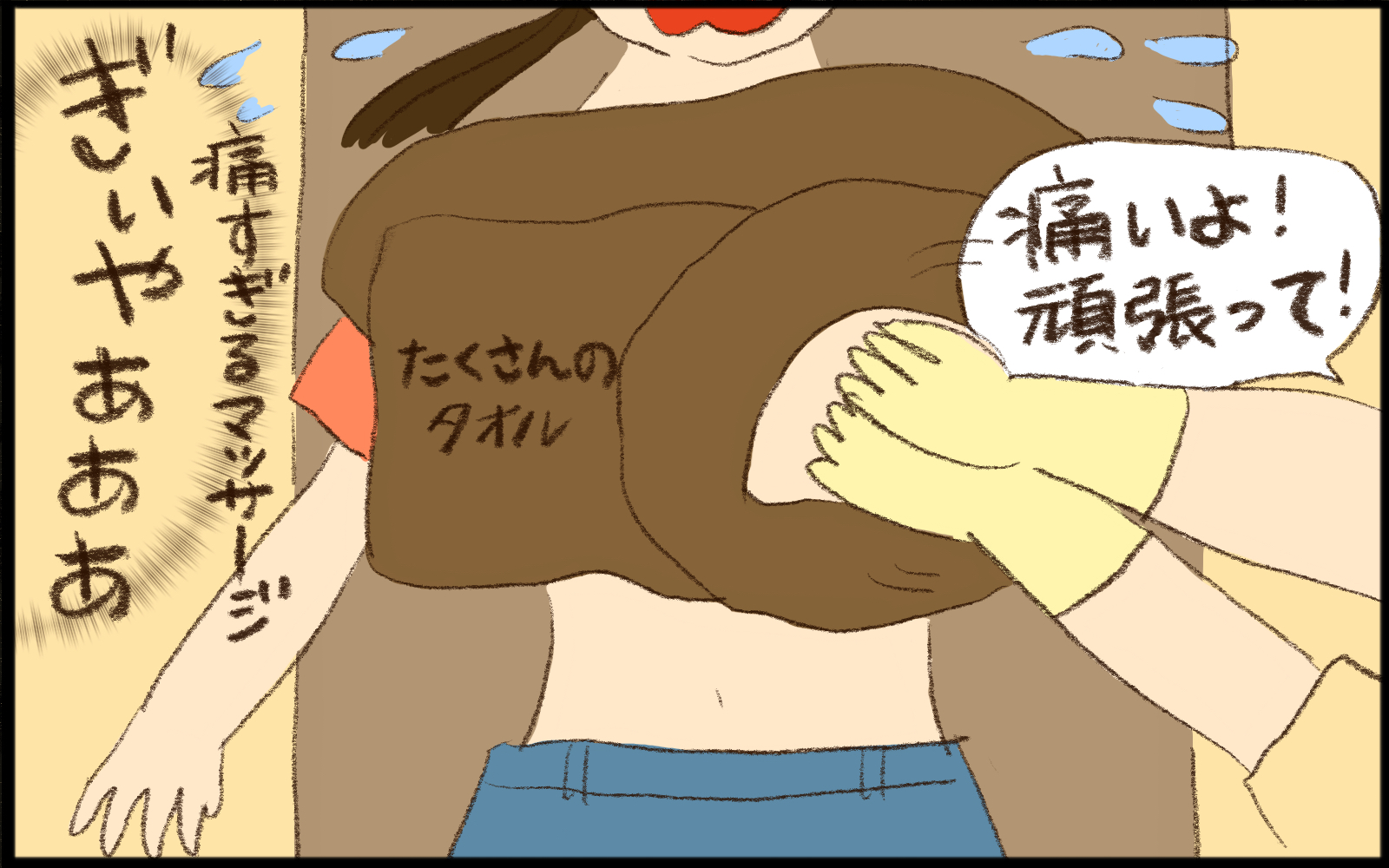 助産師さんに丁寧に胸をマッサージしてもらいましたが、その痛さといったら…!涙が出てくるほど痛かったのを覚えています。