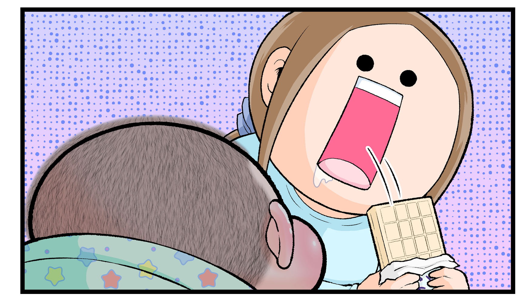 ぷにぷにほっぺがかわいい!SNSで大人気のにくきゅうぷにおさん(@nikukyupunio)の漫画をお届けします。育児中は、ママのおやつタイムも大切にしたいですよね。しかし、赤ちゃんに見つからないようこっそり食べることも。さて、おやつが赤ちゃんに見つかったとき…かわいい親子のやり取りを3回にわけてお届けします。