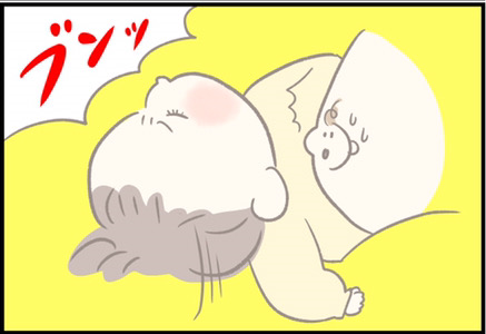 つぶみさんも二人目育児に励んでいます。二人目、ねむちゃんのほんわか授乳シーン…と思いきや、気分ではなかったのでしょうか。「ブンっ」と振り払う姿は、お兄ちゃん・ほにゅくんにも負けない貫禄がありますね。