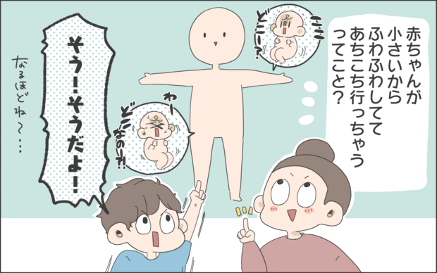 おまめくんが「お腹の赤ちゃんが迷子になってしまわない?」とかわいらしい心配をする姿にとてもほっこりさせられました!そして、お兄ちゃんらしい一面も垣間見えて産後も頼もしい姿を見せてくれるんだろうな…と想像が膨らんでしまう回でした。(ままのて編集部)