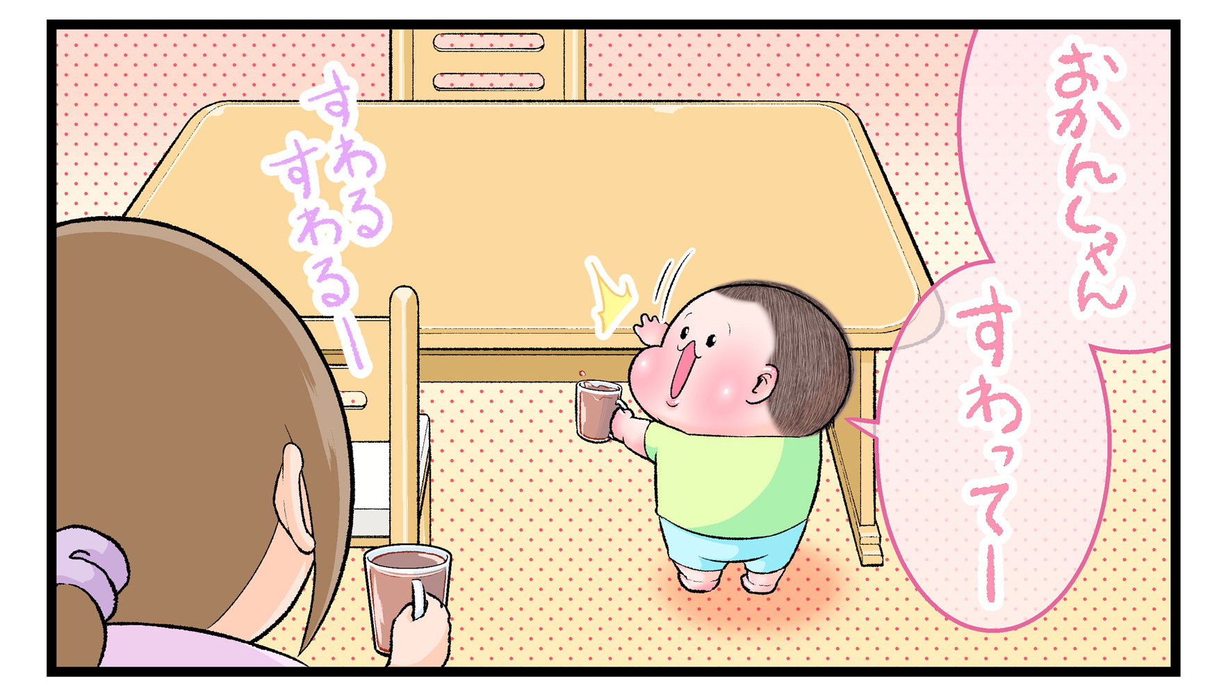 ぷにぷにほっぺがかわいい!SNSで大人気のにくきゅうぷにおさん(@nikukyupunio)の漫画をお届けします。2歳頃になると、ママと一緒に何かをすることが楽しいと感じる子どもが増えます。一緒に遊んだり食事をしたり、親子で楽しい時間を過ごしたいですね。今回は、子どもからお茶に誘われた際のかわいいエピソードです。