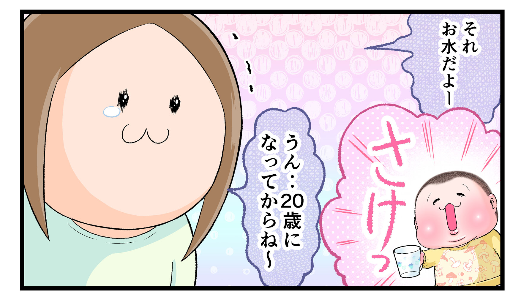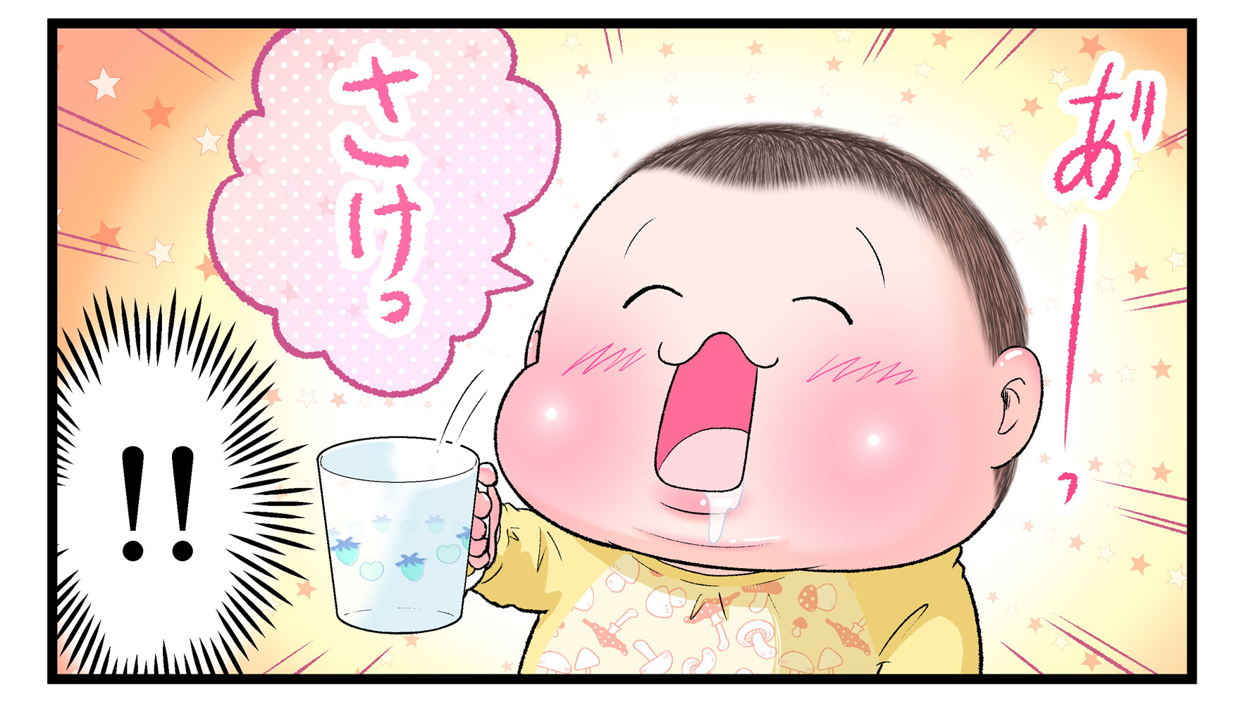 にくきゅうぷにおさんの長男・ぷにおくんは、ファミレスで食べたアサリらーめんに魅了されたようですね。自宅で作ったあさりの酒蒸しにも目がありません。そして、アサリの酒蒸しを食べた後に飲んだお水。「さけっ」と叫んだシーンに思わず笑みがこぼれました。早く大人になって親子でお酒を酌み交わしたくなるエピソードですね。