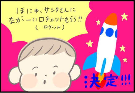 さて、つぶみさんもサンタウロースからのクリスマスプレゼントに悩んだひとりだとか。今年から兄・ほにゅくんに加え、妹・ねむちゃんのプレゼント選びも増えて、楽しさが倍増ですね。ほにゅくんはロケット、ねむちゃんは離乳食の食器セットと、それぞれ見合ったものが選べて何よりです。