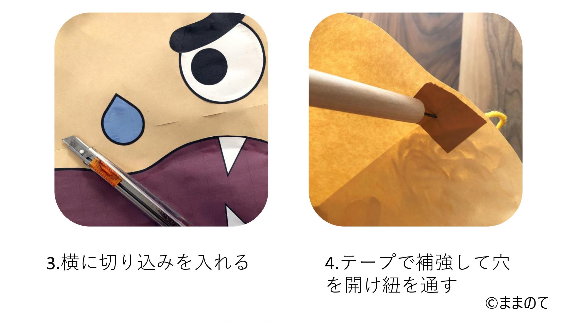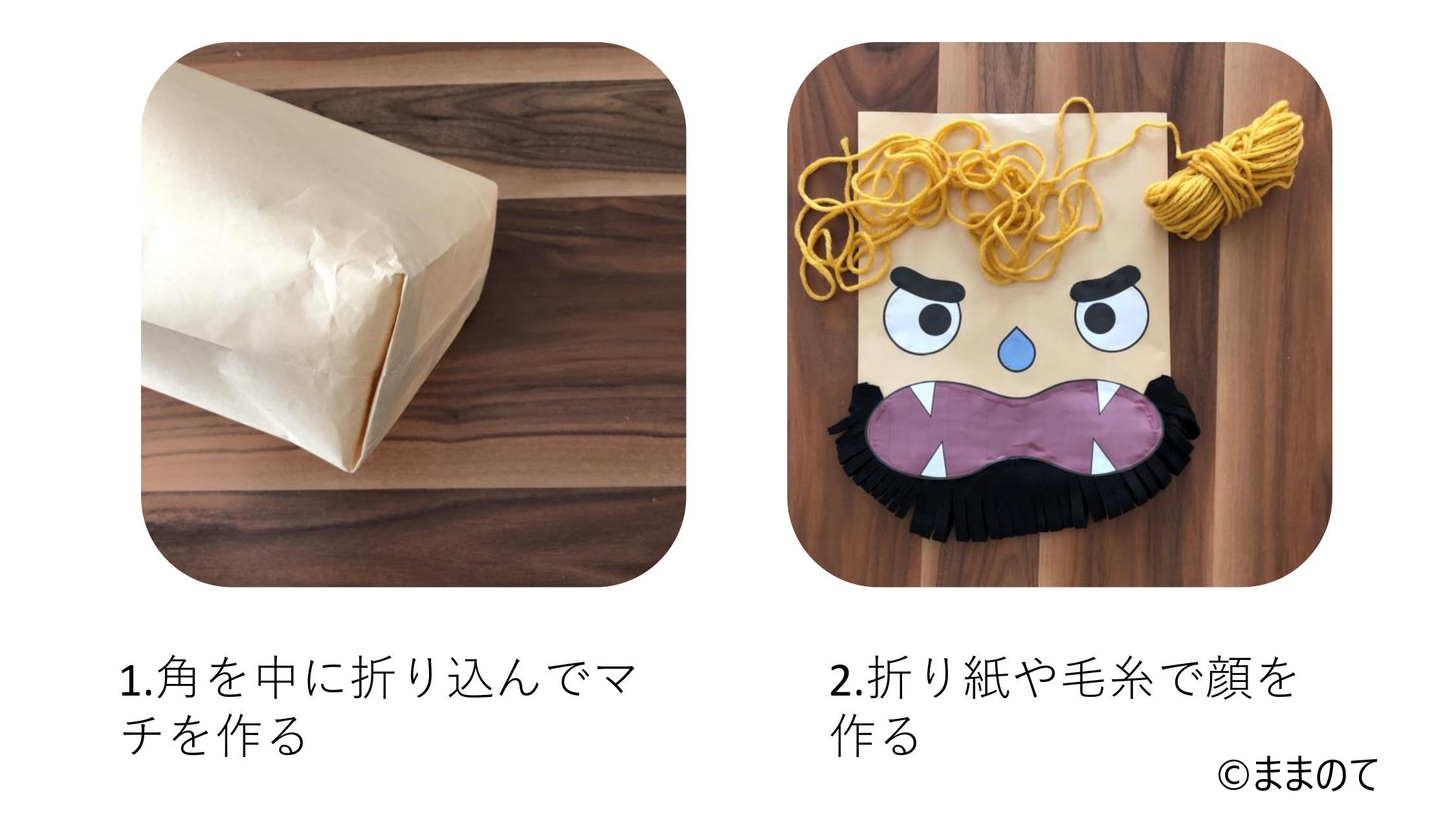 2.折り紙や毛糸を使って鬼の顔の部分を作る