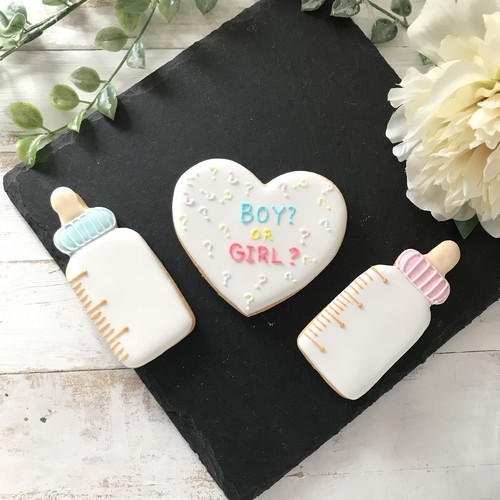 一般的なケーキや手作りケーキでジェンダーリビールを行いたいという場合、ジェンダーリビール用のアイシングクッキーも販売されています。2種類の色をしたクッキーをデコレーションして、オリジナルのジェンダーリビール用のケーキを用意しても良いでしょう。