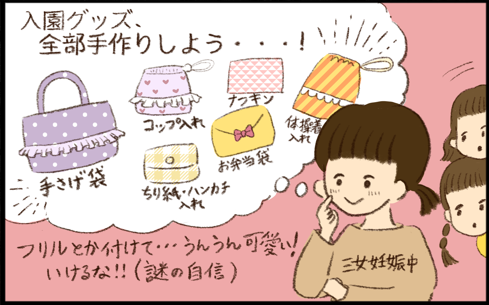 今後も次女、三女と入園することになるので、なるべく早く入園準備の用意ができるように頑張りたいと思います!