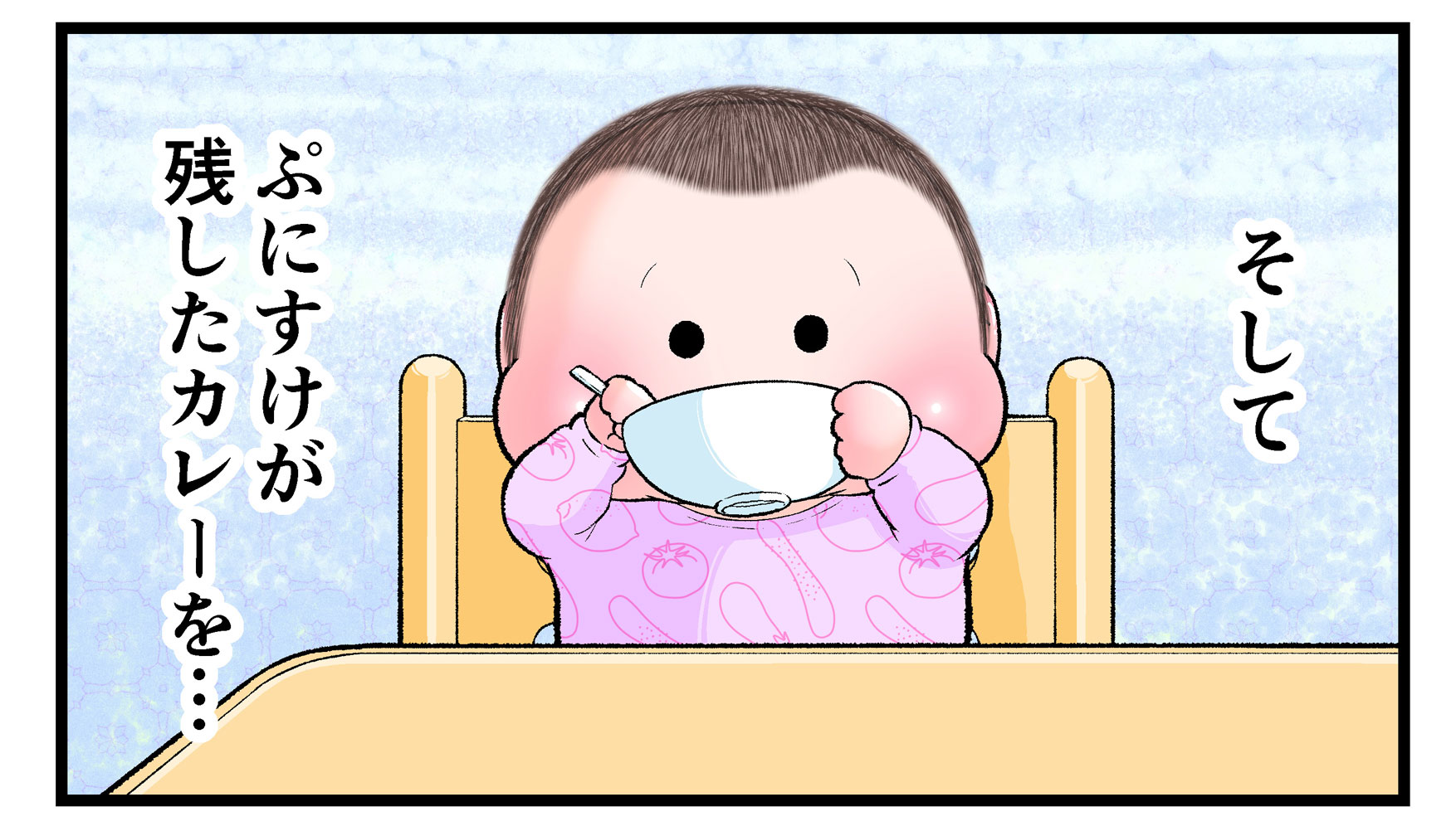 結局ぷにすけのカレーをほとんどぷにおが食べました。もう自分のごはんが済んでいるのに、この食べっぷりに感服ですww
