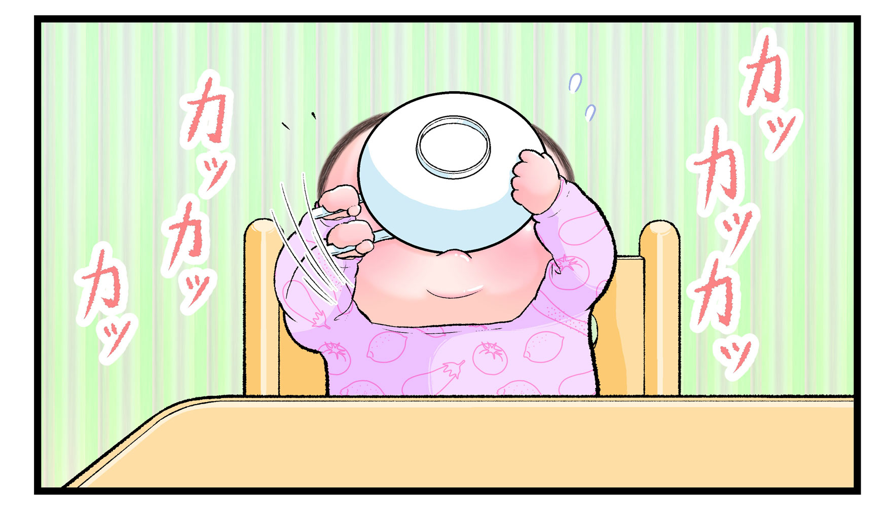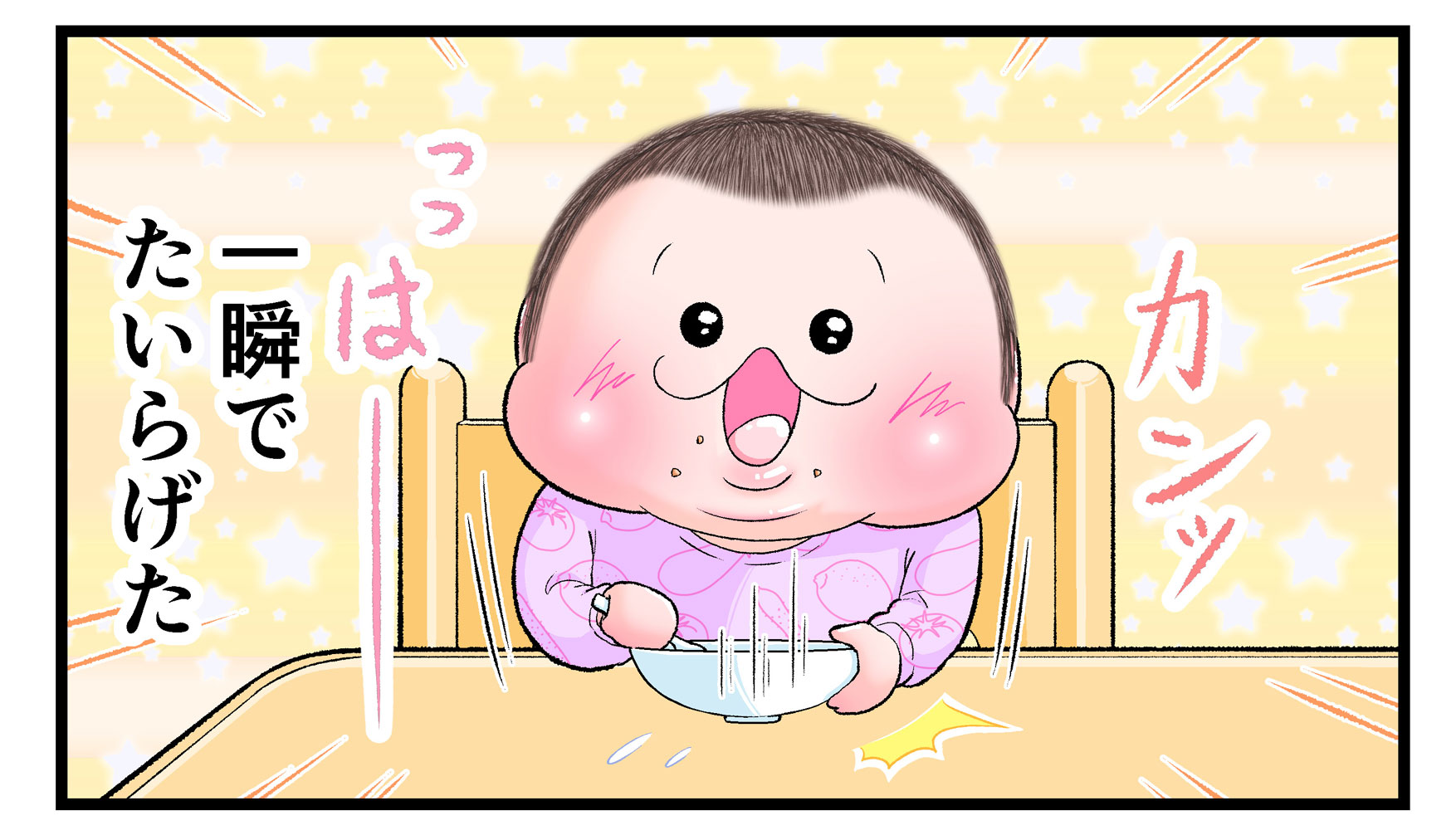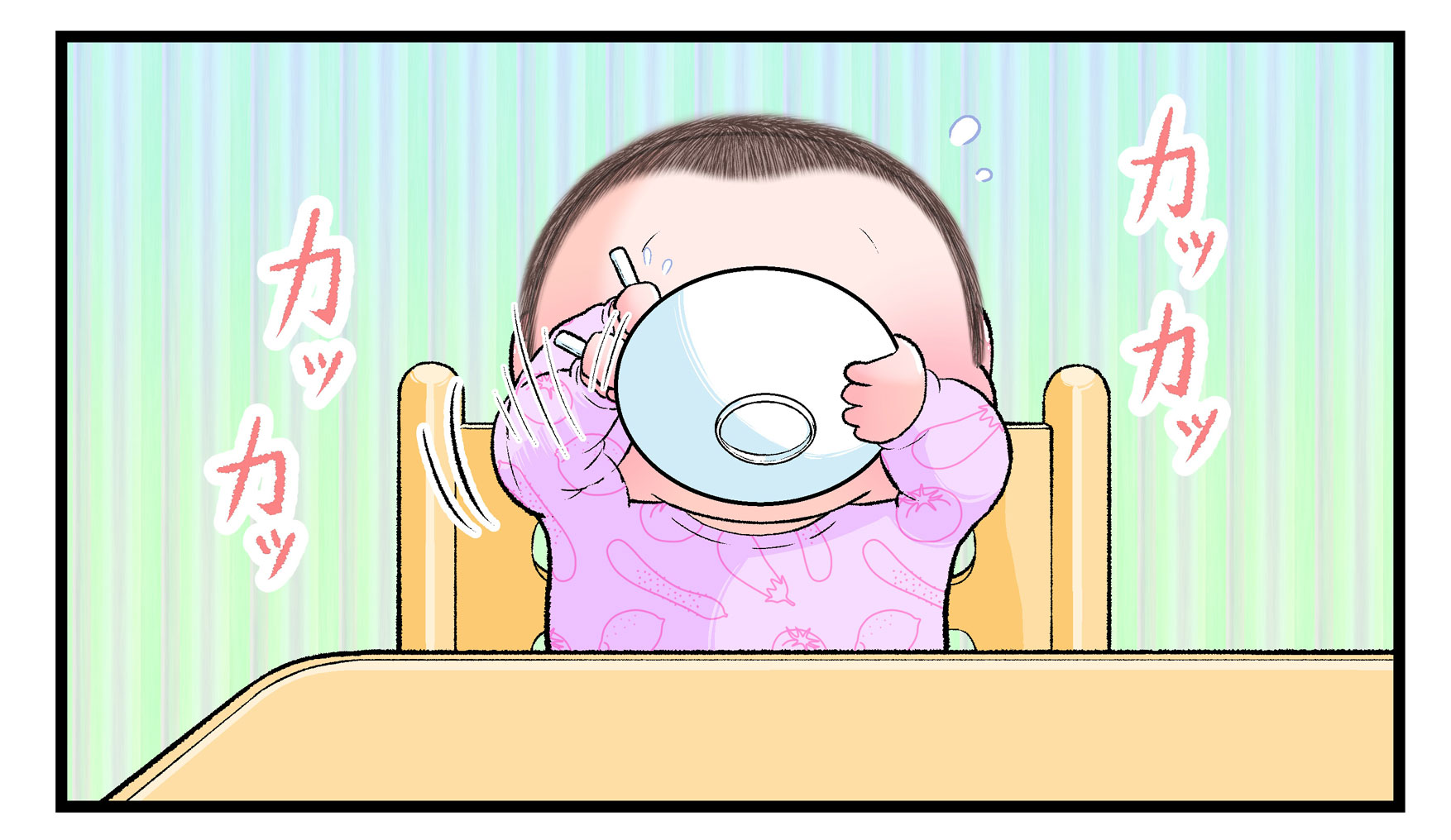 さらに与えたところ、スプーンに少しだけご飯が残り…?