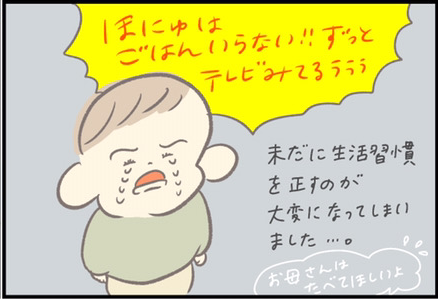 また、上の子・ほにゅくんとの関わりもさまざまな出来事があったのですね。自宅で過ごすことが増えると、テレビを見る頻度が高くなるのは仕方ないと共感する方も多いのではないでしょうか。