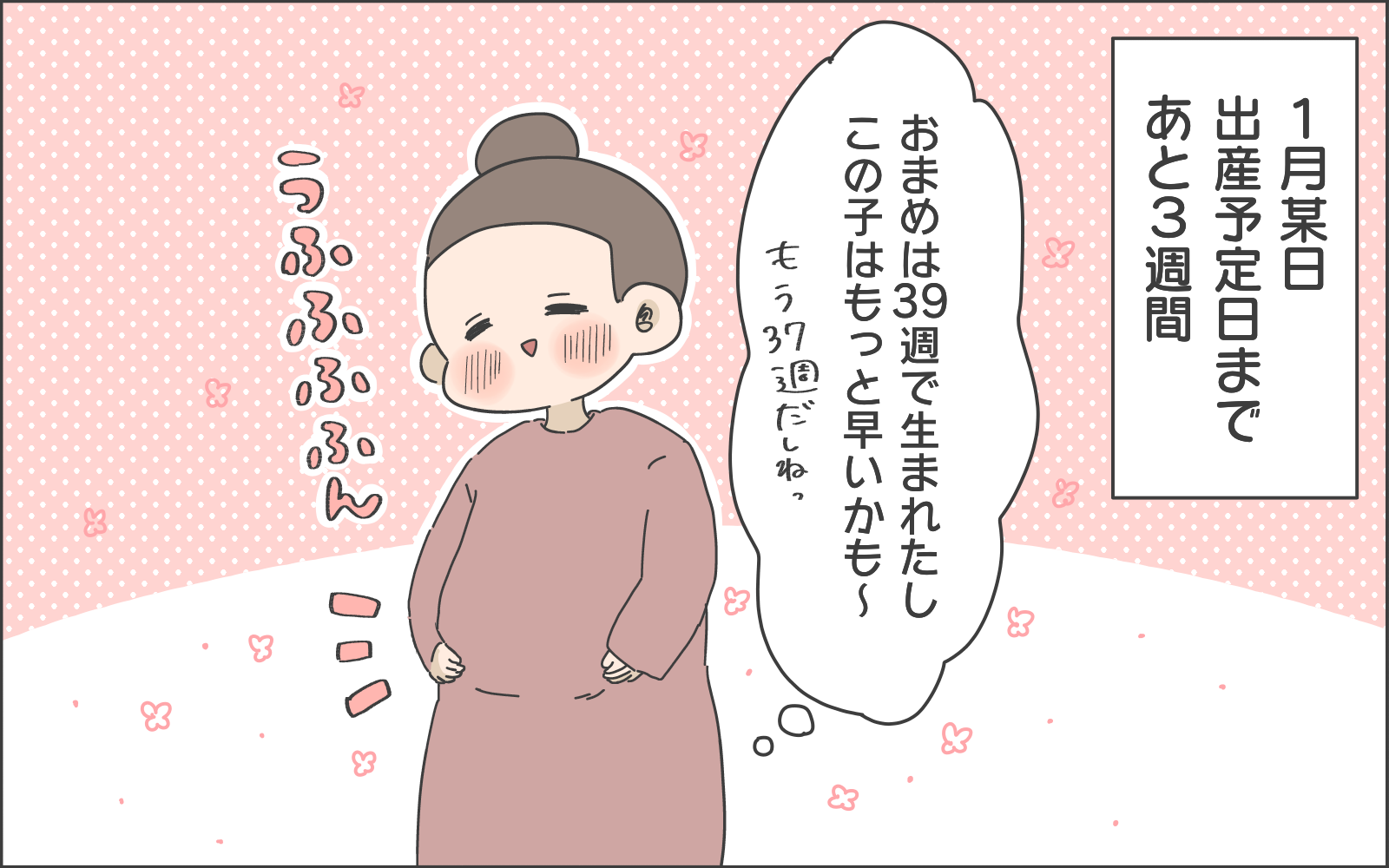 おまめくんのときは早めに生まれたことですし、二人目も早いかもしれないと予定日が近づくにつれドキドキソワソワな様子のおかめさん。予定日を過ぎたときには、少し焦りもあったかと思います。