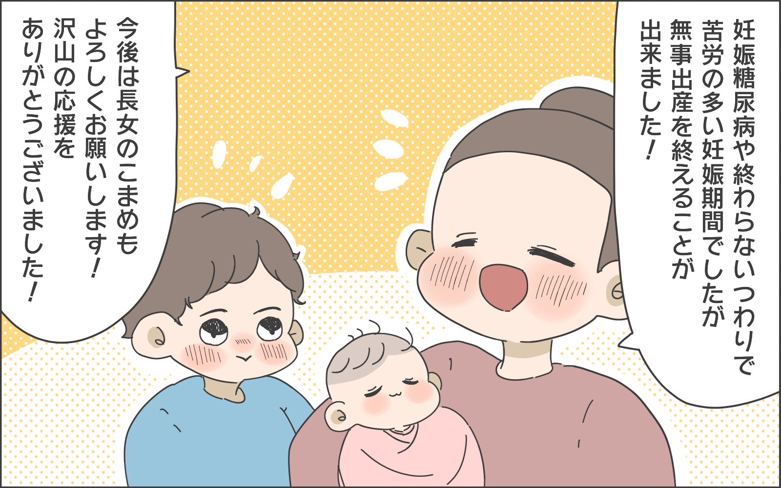 妊娠糖尿病などにより思うようにいかない妊娠生活だったこともあり、無事に出産を終えこまめちゃんとやっと会えたときは、喜びや嬉しさもひとしおだったのではないかと思います。