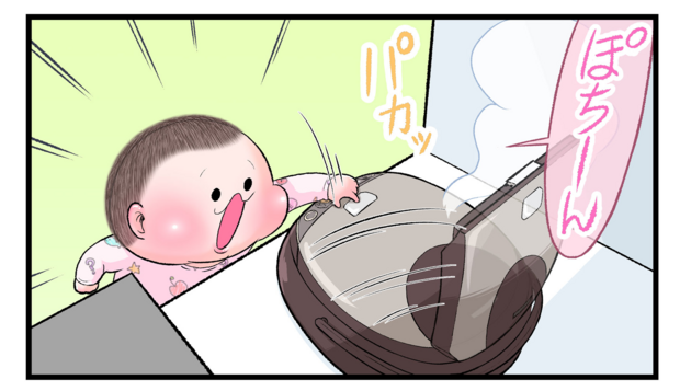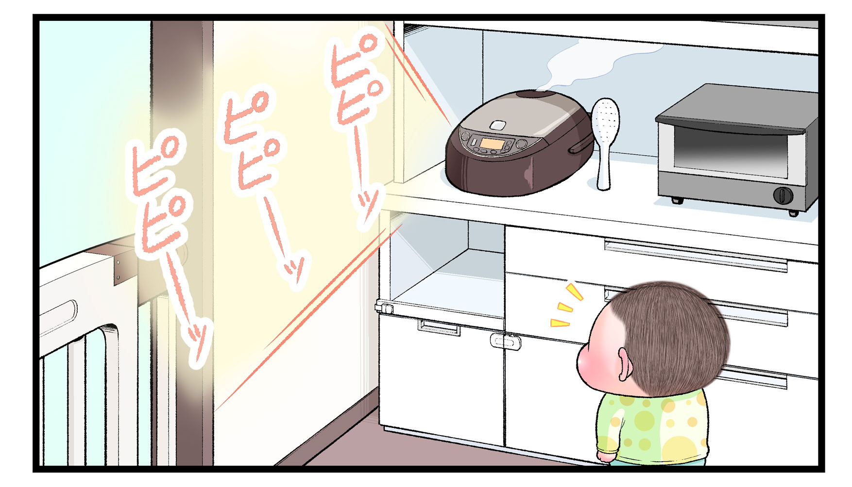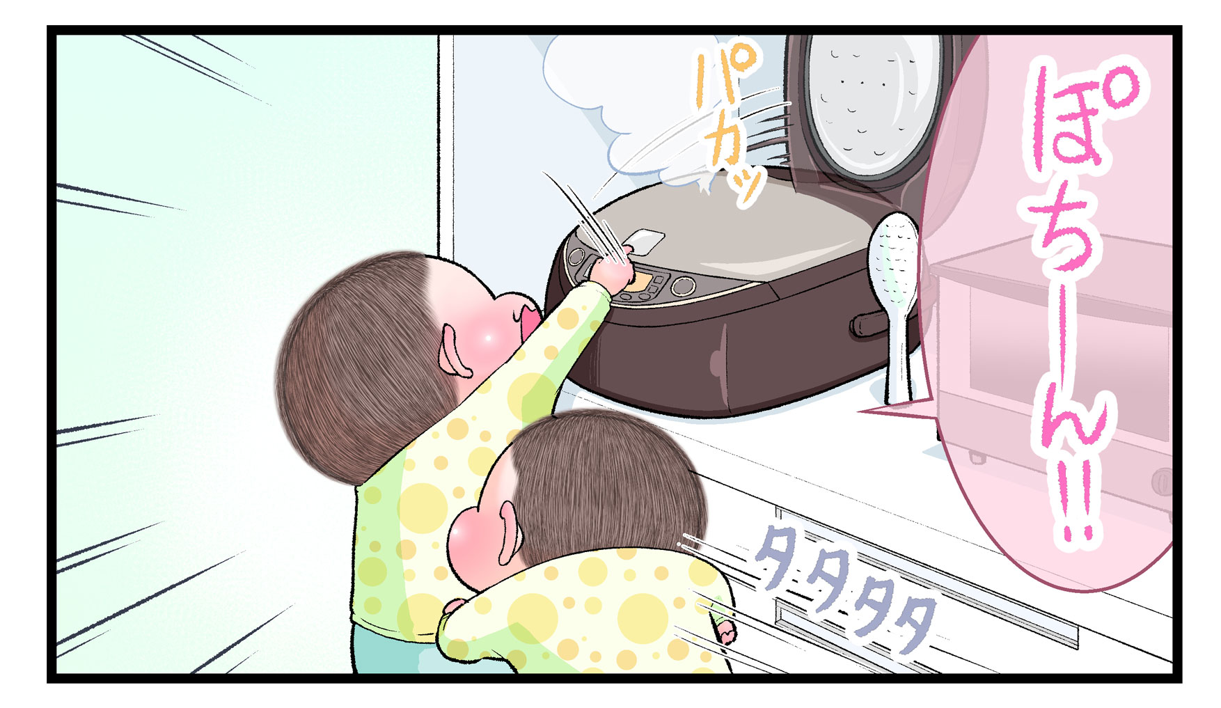 「お釜ぽちーん」にハマってた時期が1ヶ月程ありました。 炊飯器は手の届かない場所に置いていますが、 炊飯器を新調した際に蓋を開けるボタンがギリギリ手の届く位置に あった為、ボタンを押して開けることを覚えてしまい…気付くと蓋が開いているときが何度かありました。