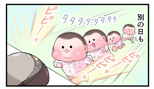 ぷにぷにほっぺが最高!SNSで大人気のにくきゅうぷにおさん(@nikukyupunio)の漫画です。幼い子どもは、大人が思いもよらないことに興味を持つときがありますよね。自宅の中で、常に鳴る音に興味を持つ子どももいるでしょう。たとえば、洗濯機、食洗機、炊飯器…さて、今回はどのような音に反応したのでしょうか。